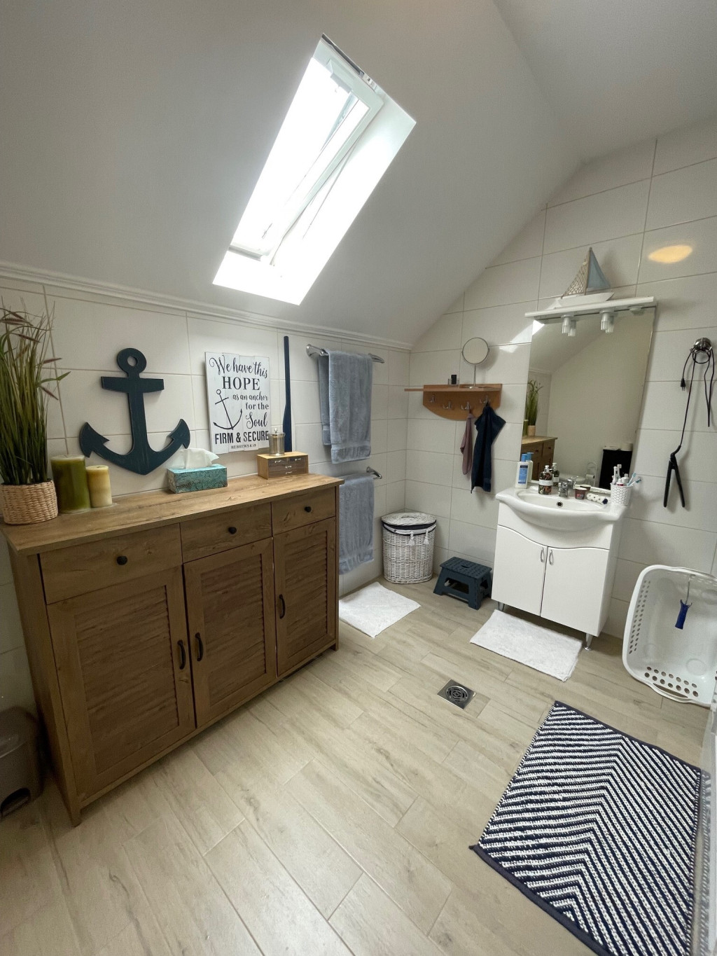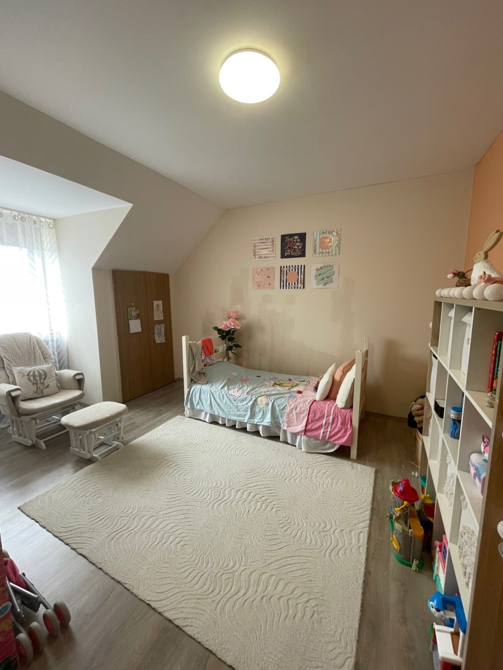 Alsó szinten: nappali, 2 fél szoba, konyha, fürdőszoba, külön helyiségben wc
