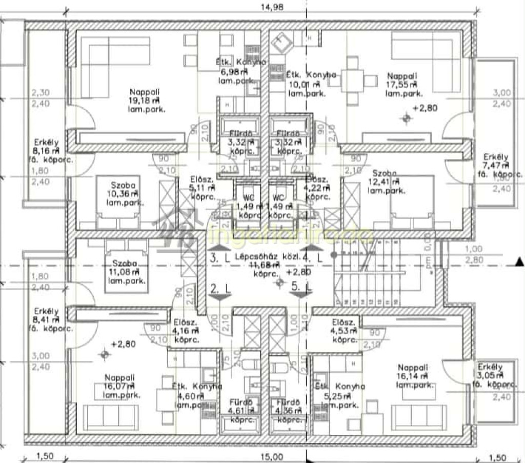 Vadonatúj, modern otthonok Nyíregyháza szívében – most elérhetők!A Színház közelében, egy elegáns és letisztult, háromszintes társasházban 12 exkluzív új építésű lakás várja leendő tulajdonosát. Ha olyan otthont keresel, amely ötvözi a városi kényelmet, a magas műszaki tartalmat és az energiatakarékos megoldásokat, itt a helyed!Árak:Földszinti lakás : 67, 42 nm ( amerikai konyhás nappali + 2 szoba + előszoba + fürdőszoba + wc ) ára Ft 1. emelet49,65 nm (amerikai konyhás nappali + előszoba + fürdőszoba + 8,41 nm erkély ) ára : 50 000 000 Ft 54,60 nm (amerikai konyhás nappali + szoba + előszoba + fürdőszoba + wc + 8,16 nm erkély ) ára: 53 802 000 Ft 56,47 nm (amerikai konyhás nappali + szoba + előszoba + fürdőszoba + wc + 7,47 nm erkély ) ára: 55 371 000 Ft 33,33 nm (amerikai konyhás nappali + előszoba + fürdőszoba + 3,05 nm erkély ) ára: 34 683 000 Ft 2. emelet38, 15 nm ( amerikai konyhás nappali +előszoba + fürdőszoba + 8,48 nm erkély ) ára: 37 301 000 Ft57, 60 nm ( amerikai konyhás nappali + szoba + előszoba + fürdőszoba + wc + 8,16 nm erkély ) ára: 56 952 000 Ft 56,44 nm ( amerikai konyhás nappali+ szoba +előszoba + fürdőszoba + wc + 7,45 nm erkély ) ára: 55 350 000 Ft 33, 42 nm ( amerikai konyhás nappali +előszoba + fürdőszoba + 3.15 nm erkély ) ára: 35 029 000 Ft 3. emelet 42, 65 nm ( amerikai konyhás nappali +előszoba + fürdőszoba + wc + 13,11 nm erkély ) ára : 46 920 000 Ft 63,13 nm ( amerikai konyhás nappali + előszoba + fürdőszoba + 3,91 nm és 6,48 nm erkély ) ára : 66 286 000 Ft 43,21 nm ( amerikai konyhás nappali +szoba + előszoba + fürdőszoba + wc + 11,51 nm erkély ) ára : 47 531 000 Ft Lakások minden élethelyzetreFöldszinti, nagy teraszos lakások a kertkapcsolat kedvelőinekErkélyes lakások az 1–2. emeleten, praktikus elrendezésselPenthouse hangulatú, óriási teraszos otthonok a legfelső szintenMiért különleges ez a projekt?Modern, 3 emeletes épület, összesen 7 garázzsal és 7 felszíni parkolóvalHőszigetelt, 30-as téglafal és esztétikus díszkő homlokzatPrémium minőségű, 3 rétegű, 44 mm vastag nyílászárókPadlófűtés minden helyiségben a maximális kényelemértLakásonként saját hőszivattyú (H tarifa) → rendkívül kedvező üzemeltetési költségekBurkolatok és beltéri ajtók szabadon választhatók, hogy igazán személyre szabhasd új otthonodatÁtadás: 2026 végeFedezd fel, milyen egy hely, ahol a modern építészet, a minőség és a kiváló lokáció találkozik.Lépj időben – a legjobb lakások gyorsan elkelnek!3%-os hitel idényelhető. Irodai azonosító: 10 288Vevőink részére a közvetítés díjtalan és ingyenes hitelügyintézéssel állunk rendelkezésre.