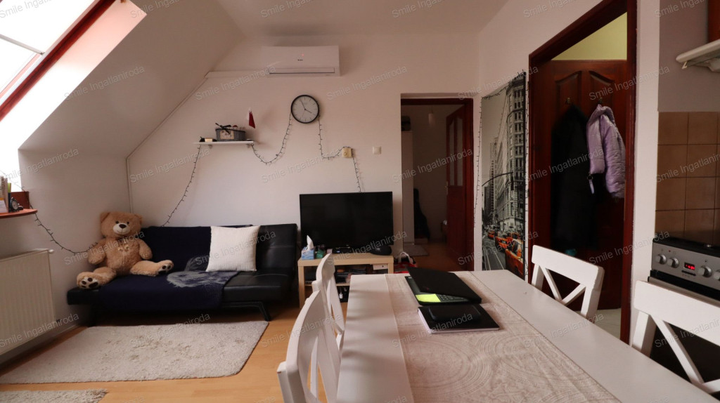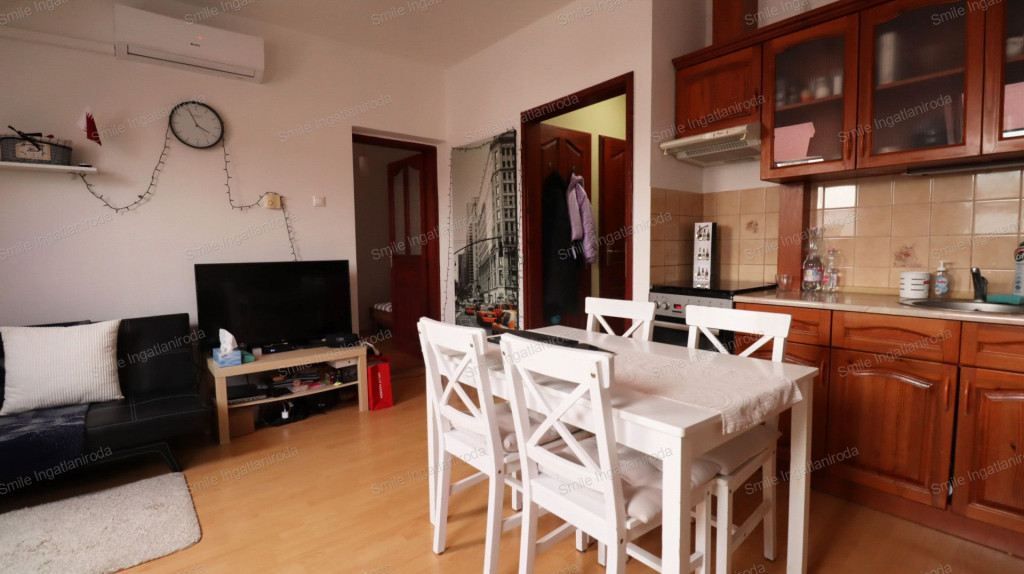 A nappali a konyha és az étkező egy légtérben található a hálószoba különálló , a fürdőszoba és a WC is külön helyiségben került kialakításra. A lakás fűtéséről gáz-cirko gázkazán, míg a hűtésről klímaberendezés gondoskodnak A parkolás az utcán 8:00-17:00-ig fizetés ellenében lehetséges.
