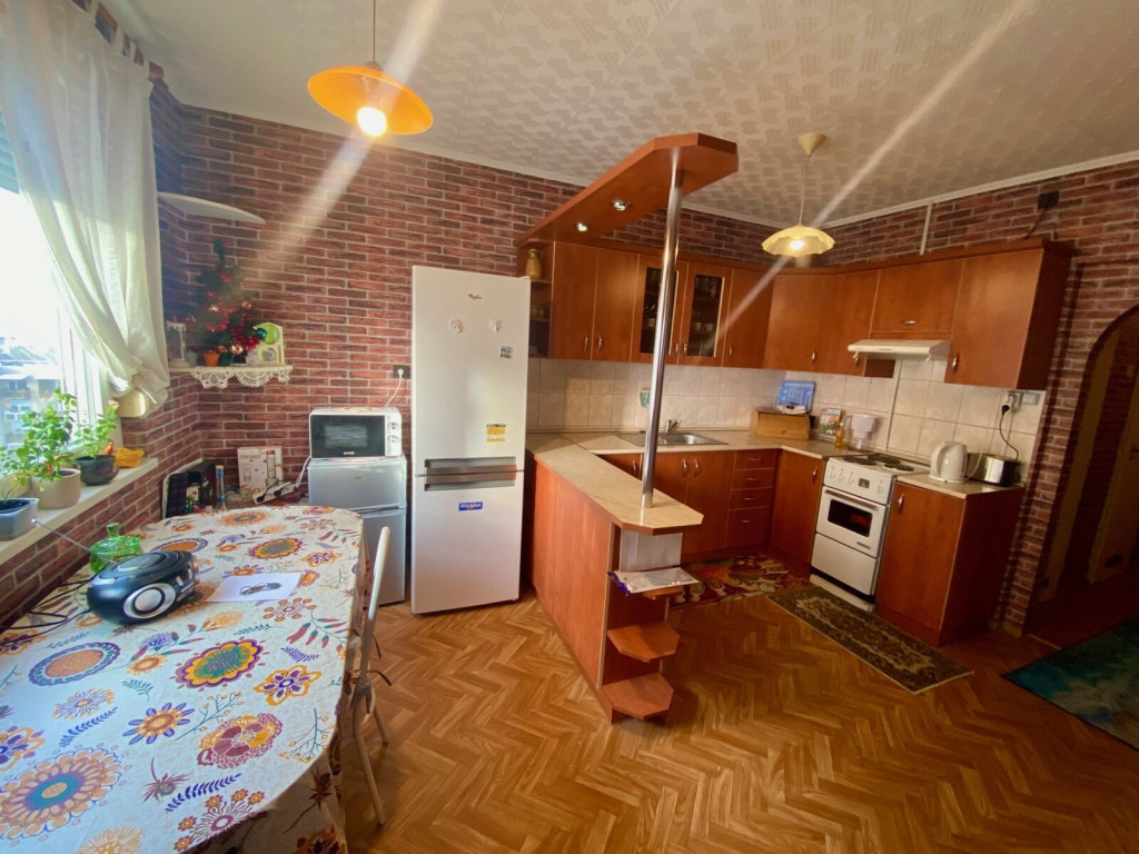 A képeken látható bútorzat, valamint a teljes gépesítés – beleértve a hűtőszekrényt és a mosógépet is – a vételár részét képezi.