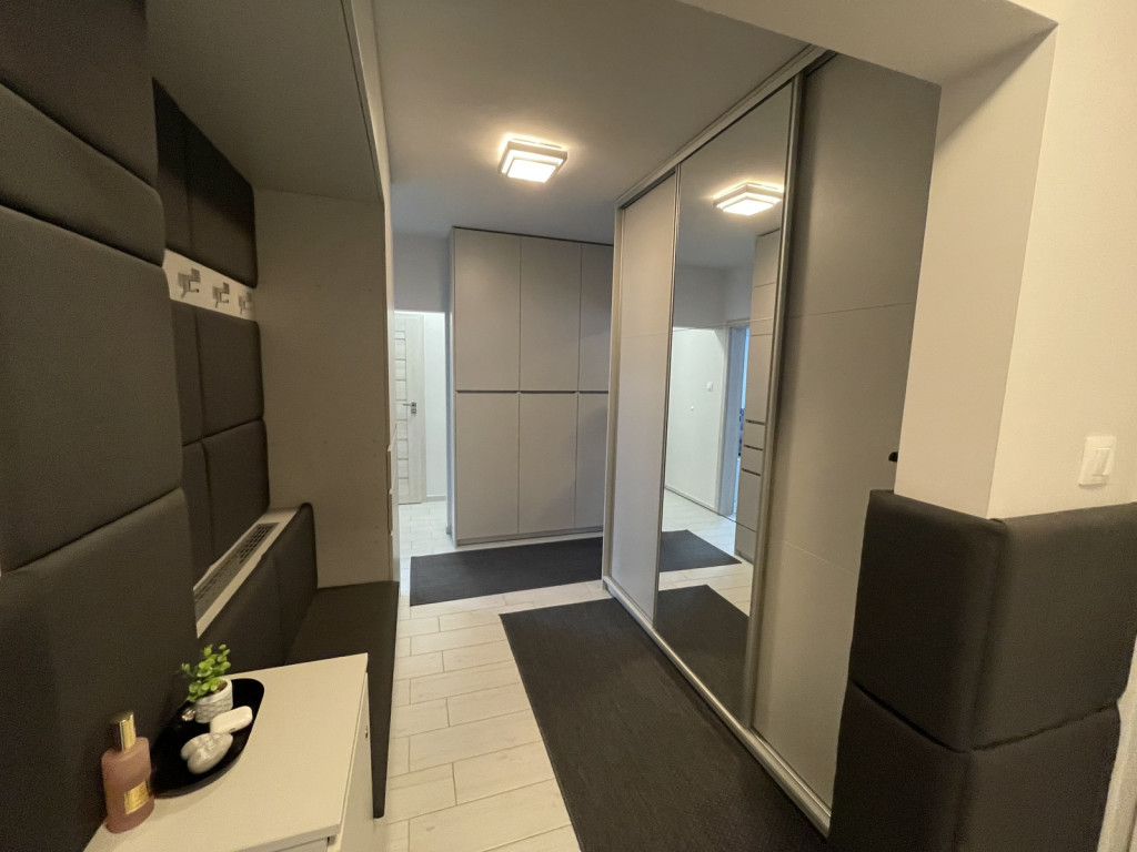 Nyíregyháza belvárosának szívében, a Korzó üzletház közvetlen szomszédságában eladó egy első emeleti, 87 m²-es, tágas kialakítású, három szoba + nappalis, erkélyes lakás, amely vezeték szintig felújított állapotban várja új tulajdonosát. Az ingatlan igényes, egyedi tervezésű, gépesített konyhabútorral, minőségi burkolatokkal és prémium beltéri ajtókkal rendelkezik, valamint három darab klímaberendezés gondoskodik a komfortos hőérzetről. A műanyag nyílászárók redőnnyel és reluxával felszereltek, a szigetelt, téglaépítésű társasház pedig rendezett, csendes környezetet biztosít. A lakásban négy nagyméretű, beépített szekrény található, melyek a vételár részét képezik. Fenntartási költsége rendkívül kedvező, a közös költség mindössze 7.000 Ft, ami a nagy alapterülethez képest különösen előnyös. Kiváló elhelyezkedésének köszönhetően nemcsak otthonnak ideális, hanem irodai használatra vagy befektetési célra is tökéletes választás, hiszen a belvárosi lokáció hosszú távon is értékálló.Az ingatlan azonosítója: 99582Érdeklődni:
