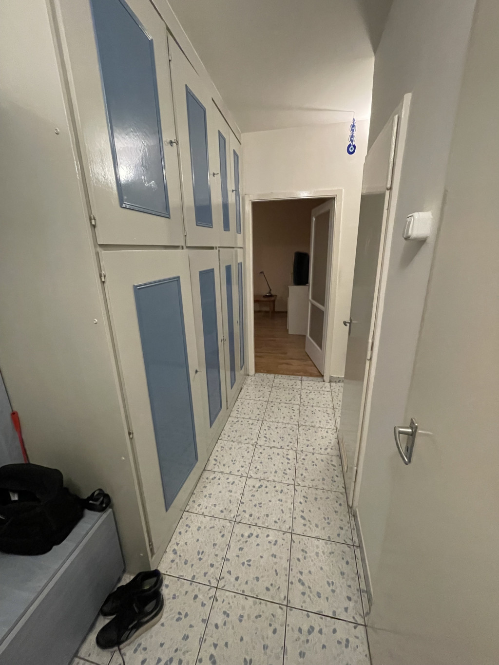 A lakás elrendezése: 2 külön nyíló szoba, erkély, NAGY KONYHA-ÉTKEZŐ, külön helyiségben fürdőszoba, wc, közlekedő beépített szekrénnyel.