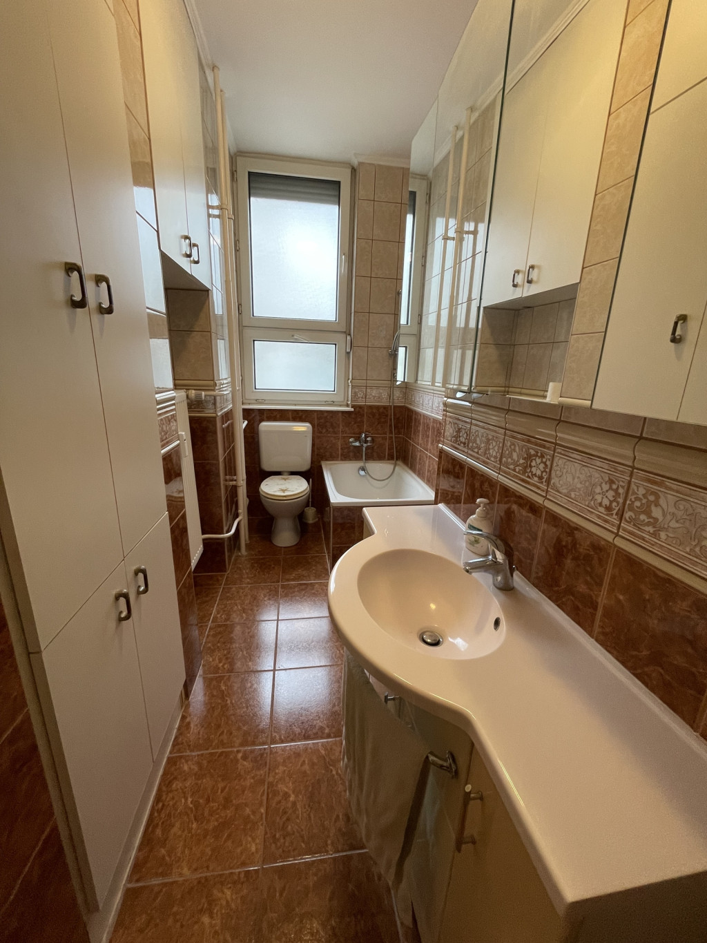 A fürdőszoba felújított, a konyhában egyedi konyhabútor és tűzhely található. A folyosón praktikus beépített szekrény segíti a mindennapi tárolást.