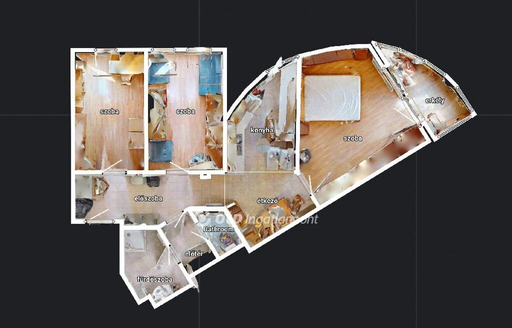 A lakás praktikus elrendezésű, nappali és két külön nyíló szoba biztosít kényelmes életteret családok vagy párok számára. A tetőtéri kialakításnak köszönhetően az ingatlan világos és hangulatos. A ferde falsík csak a két fél szobát érinti, minimális térveszteséggel. A nappaliból elérhető loggia kellemes pihenési lehetőséget kínál.