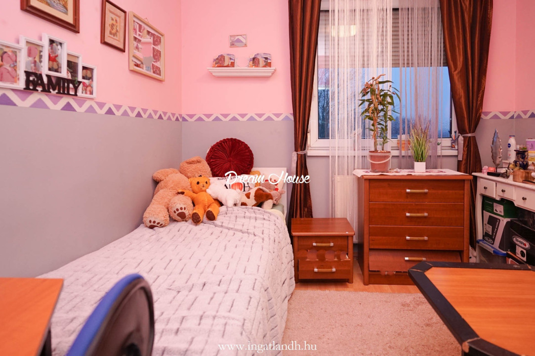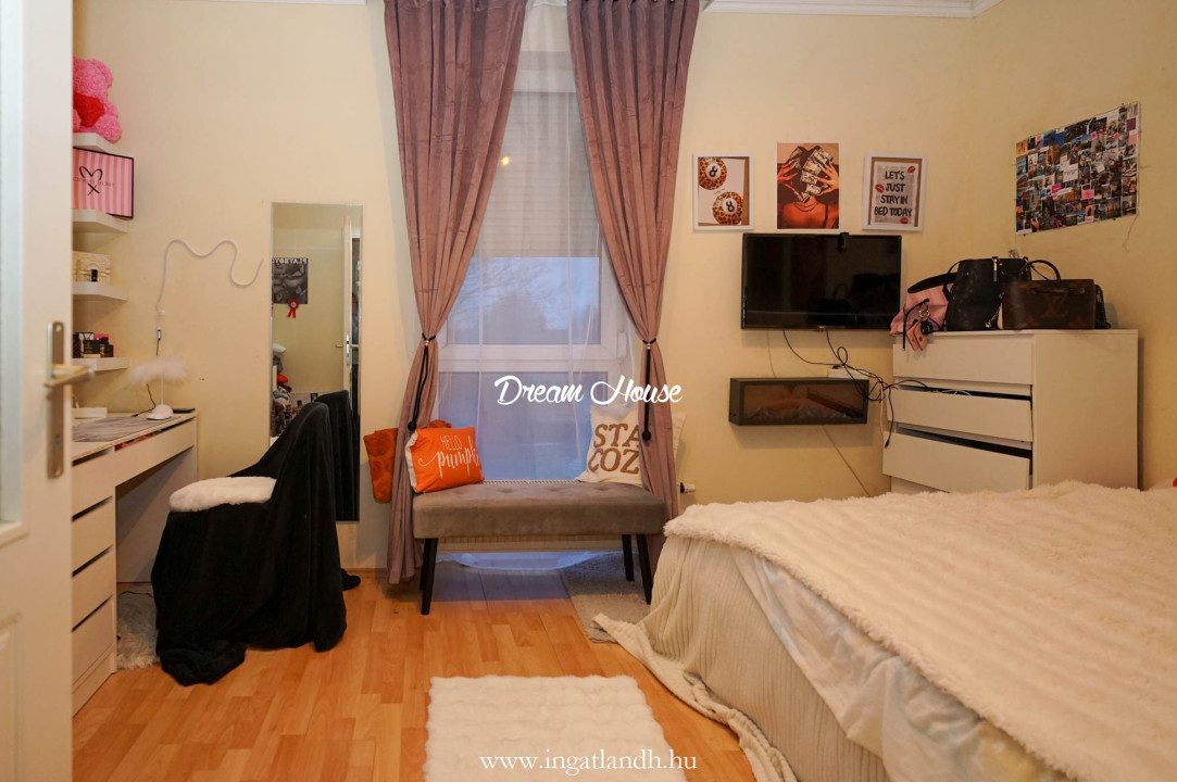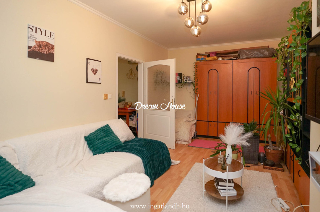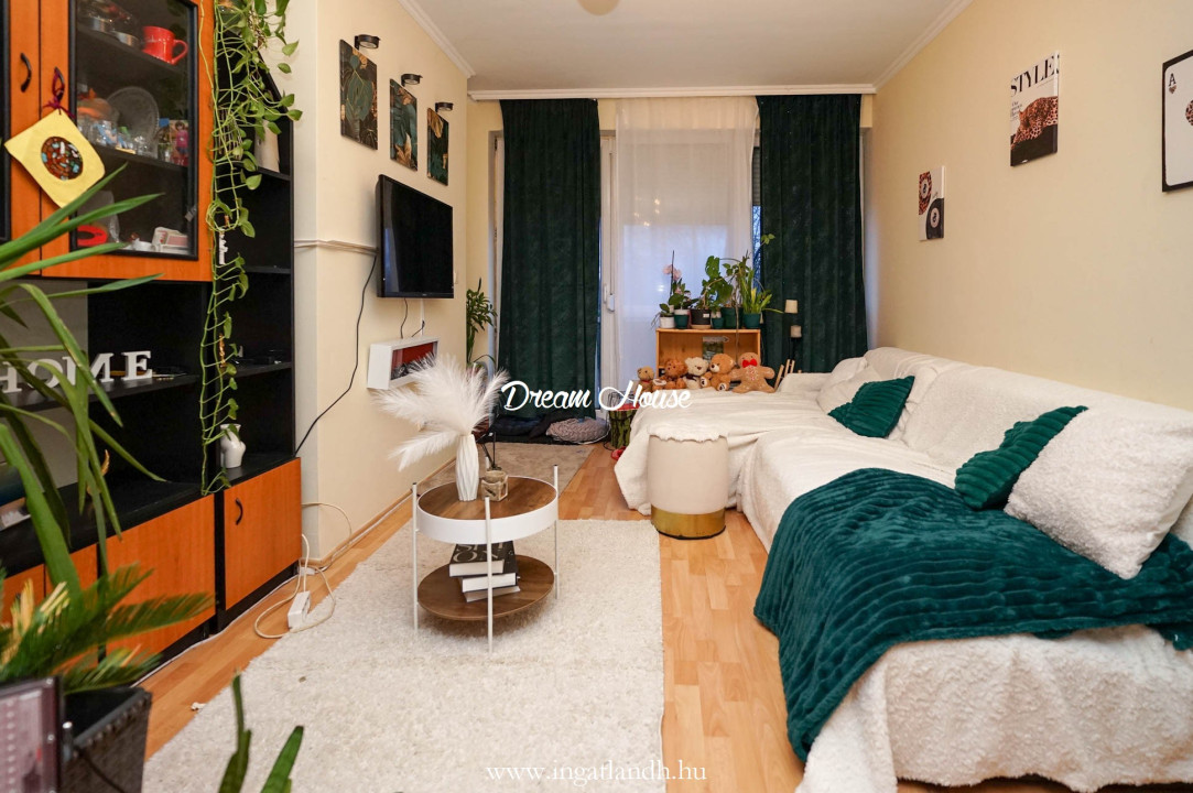 A lakás a IV. emeleten helyezkedik el, kényelmes elrendezésének köszönhetően ideális választás családoknak vagy akár idősebbek számára is. Két külön nyíló hálószoba, egy zárható nappali, valamint egy étkezős konyha biztosítja a praktikus mindennapokat.