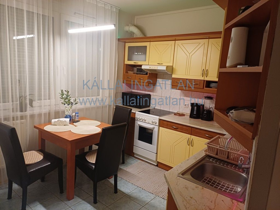 Az ingatlan elosztása: előszoba, külön fürdőszoba, WC, tágas konyha-étkező, kettő külön nyíló teljes értékű szoba.