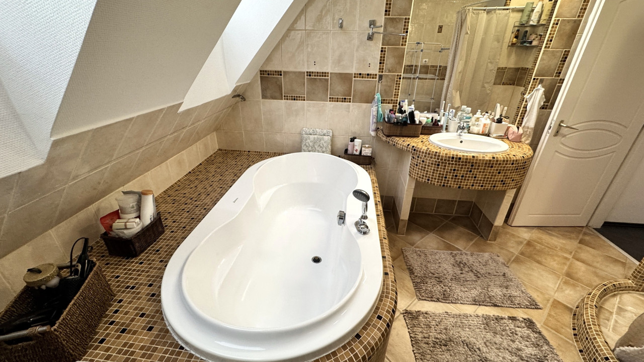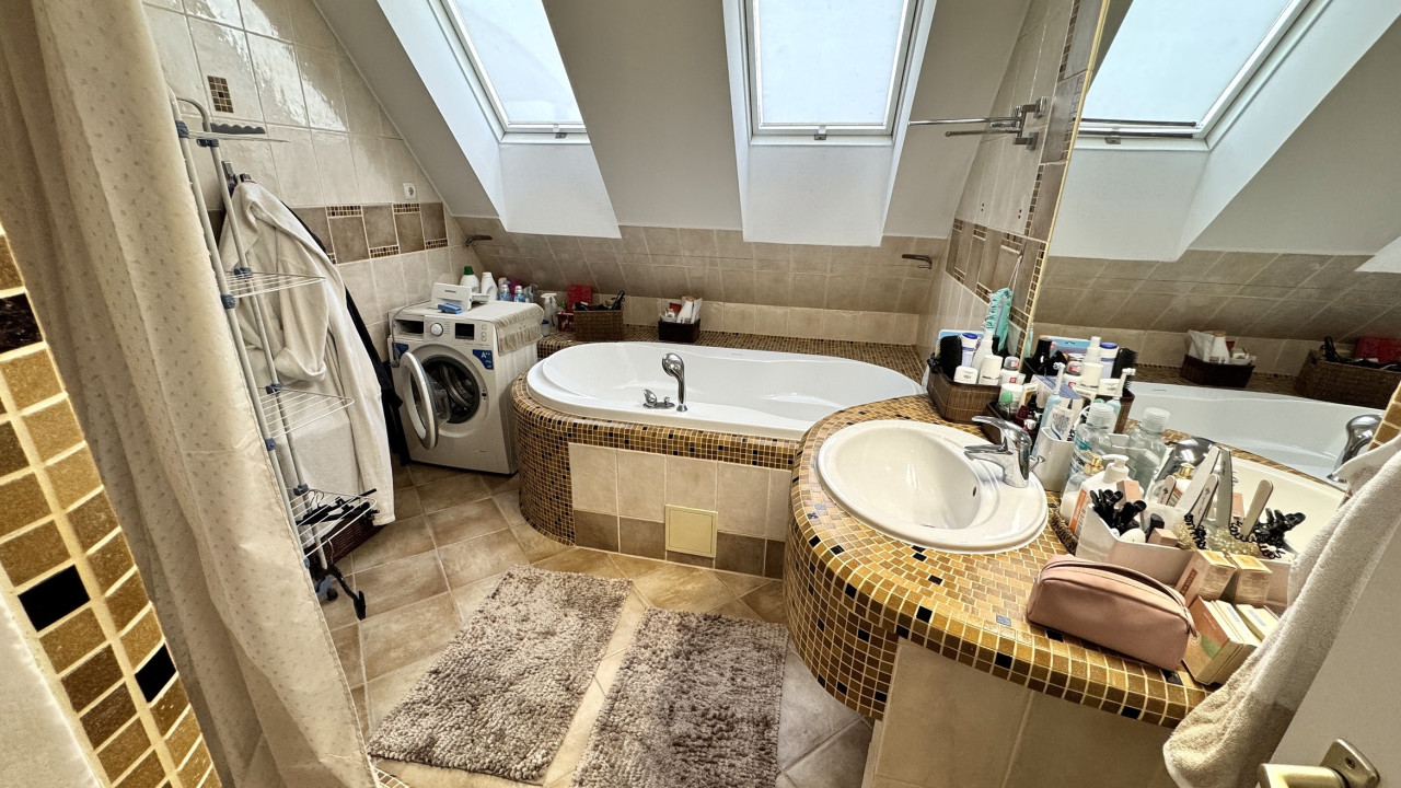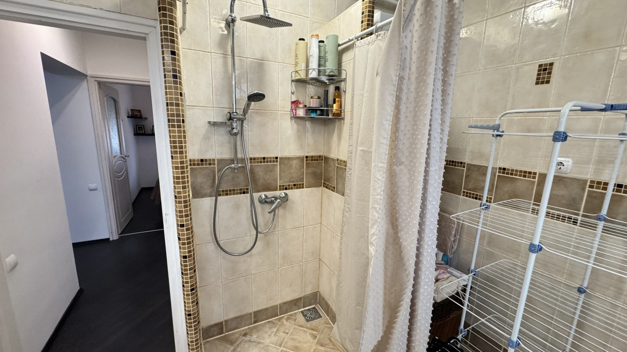Fürdőszoba zuhanyzóval-káddal, külön wc.