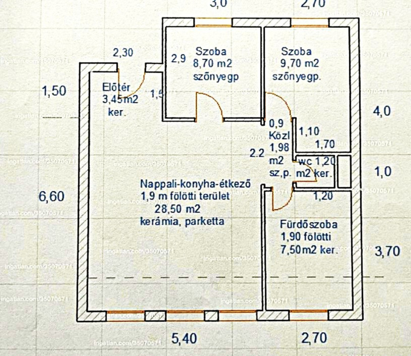Méret: 61 m² (+ 4 m² erkély + zárt udvaron fix parkoló).