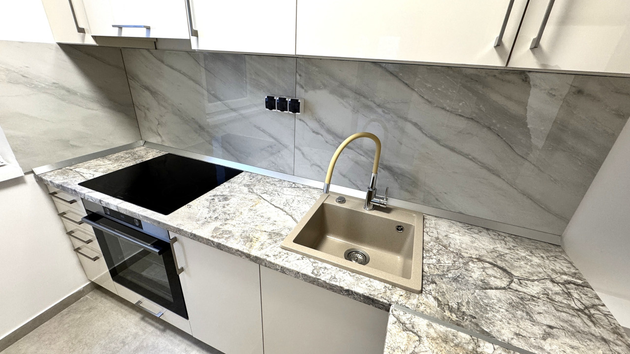 Új egyedi konyhabútor fehér prémium gépekkel ( elektromos főzőlap, beépített sütő, gránit mosogató).