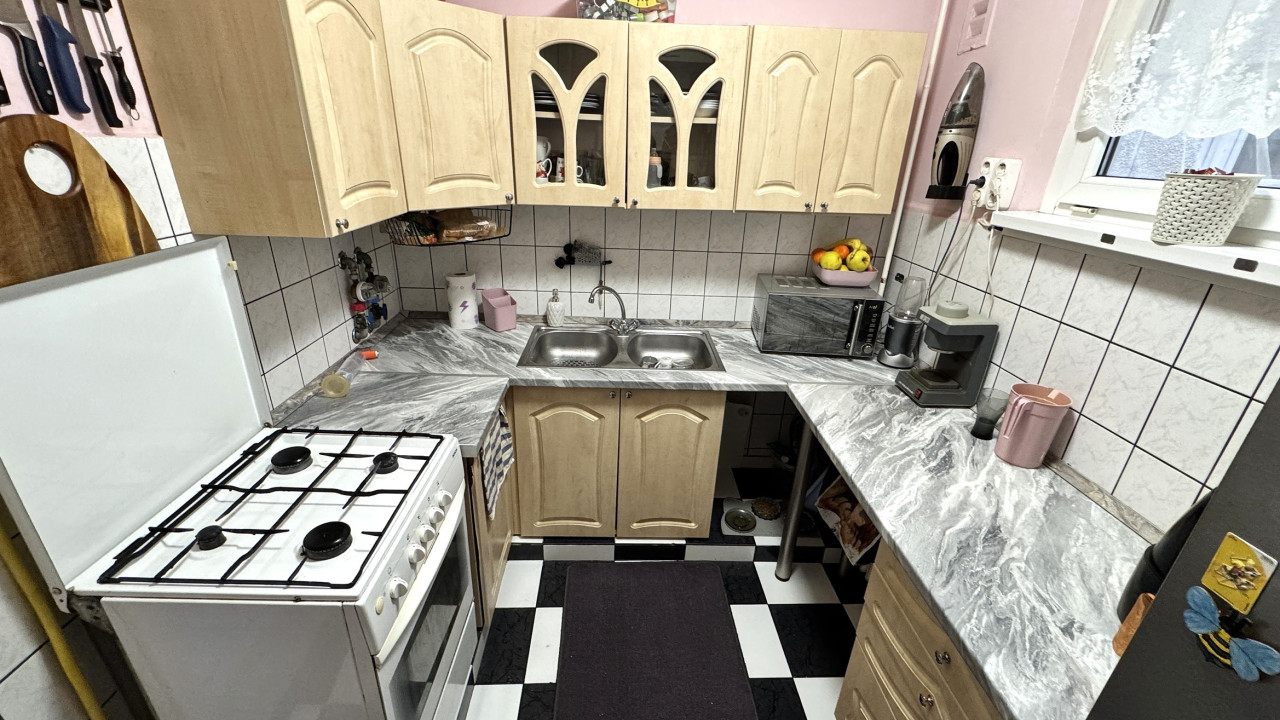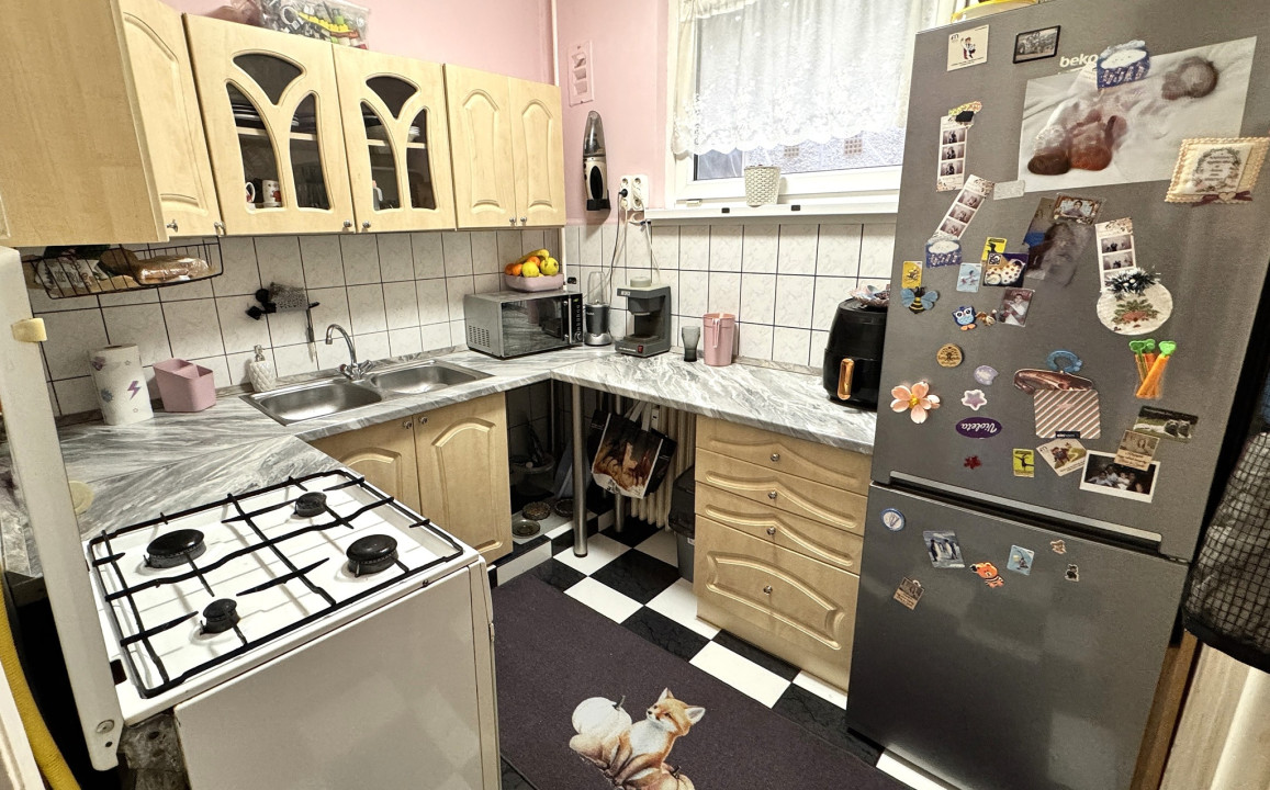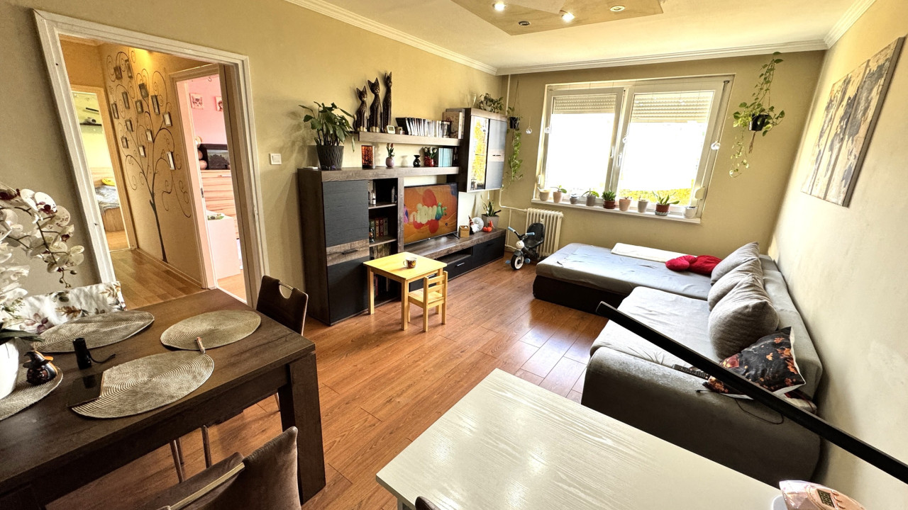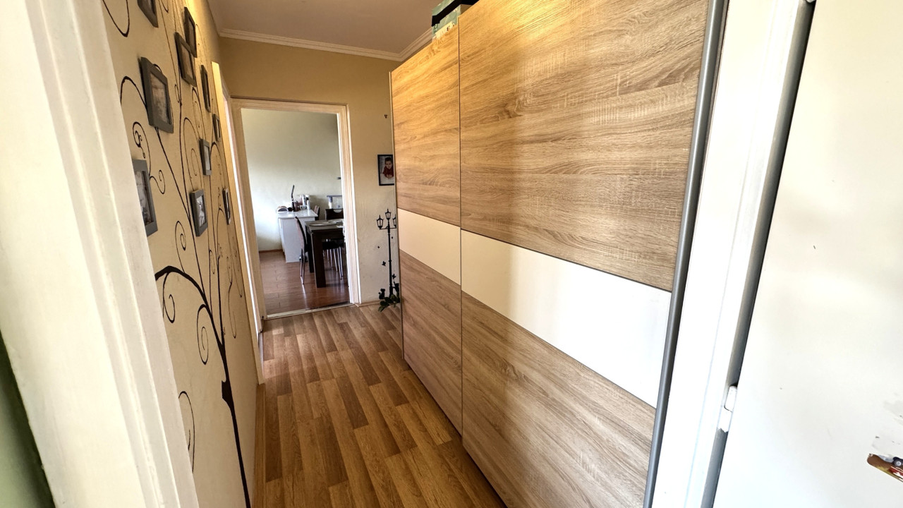 Elosztása: előszoba, 3 külön nyíló szoba, konyha, közlekedő, fürdőszoba, külön wc.