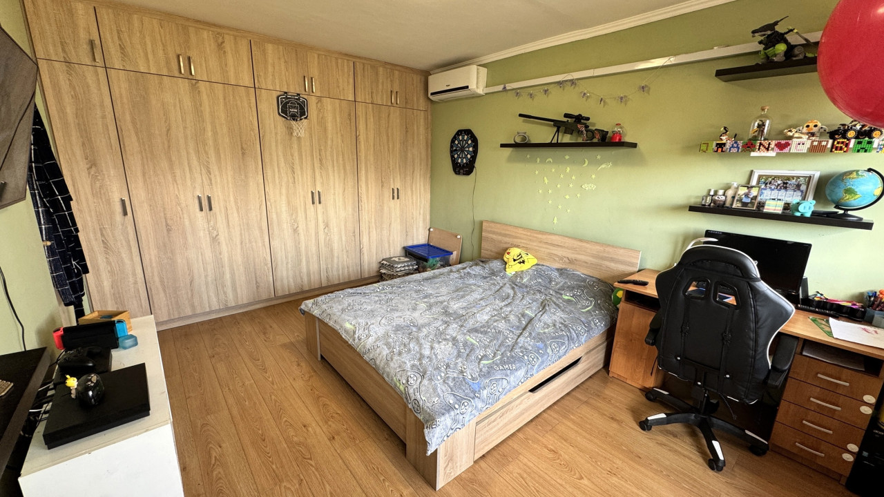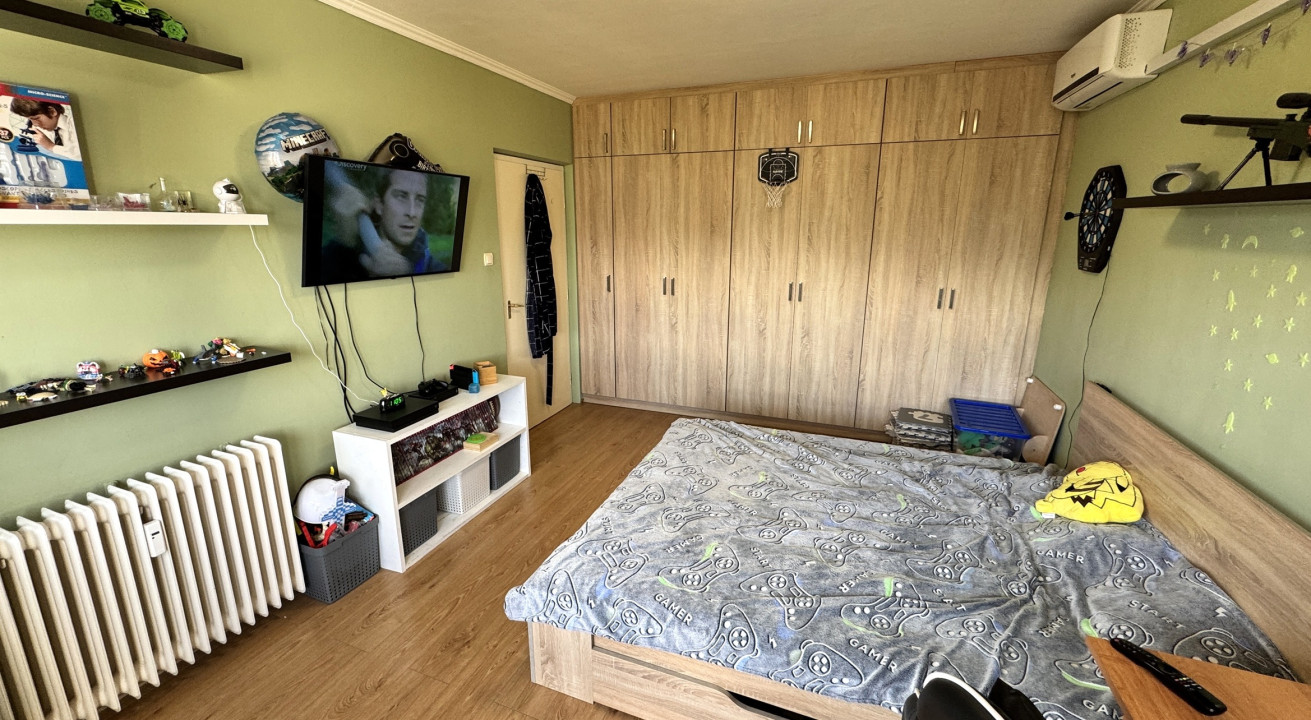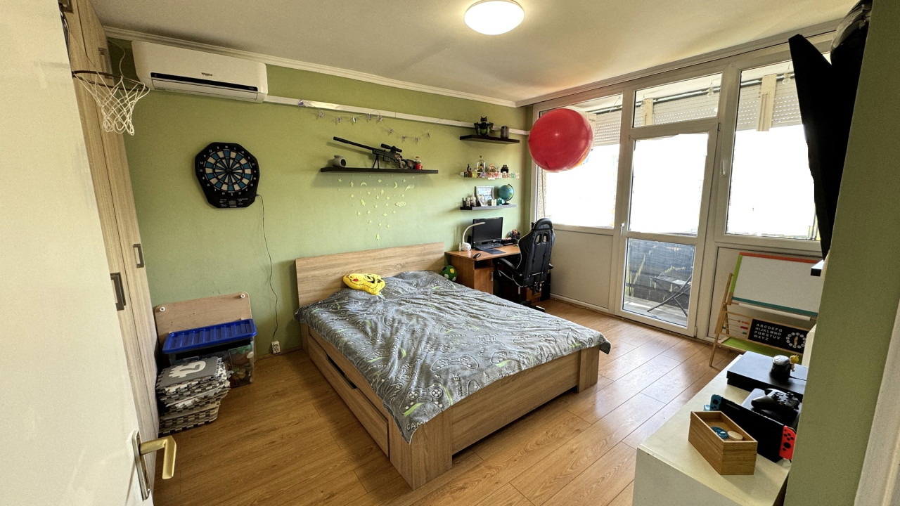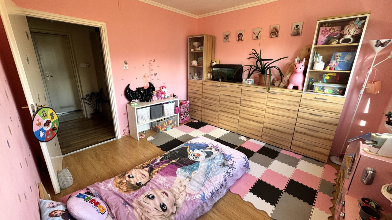 Elosztása: előszoba, 3 külön nyíló szoba, konyha, közlekedő, fürdőszoba, külön wc.