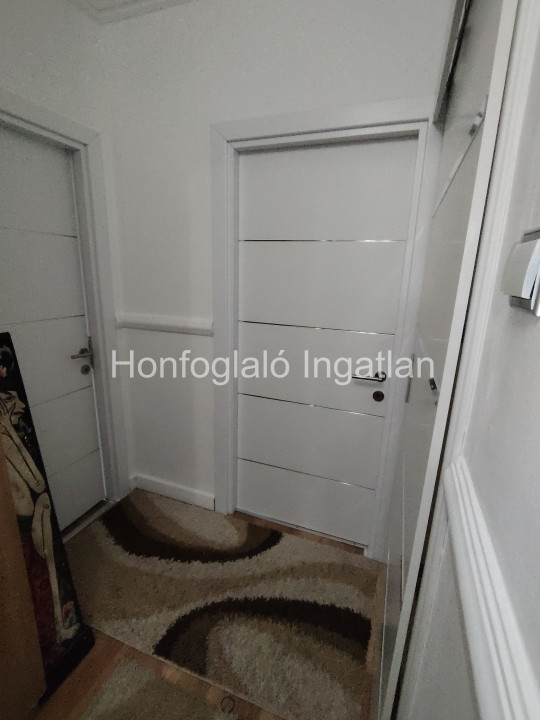 Az ingatlan elrendezése rendkívül praktikus: három külön nyíló szoba, tágas konyha, fürdőszoba, külön WC, valamint egy teljes hosszában bútorozott közlekedő kapott helyet.