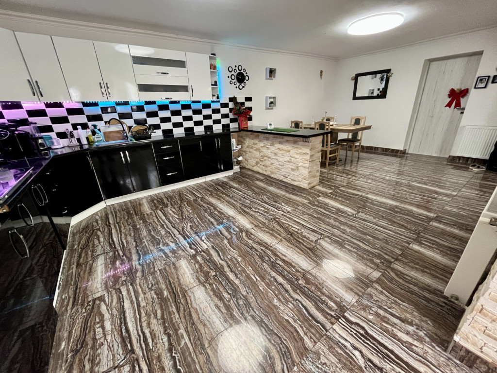 Belépve az otthonba egy tágas, amerikai konyhás nappali fogad. Ez a tér nemcsak a mindennapok során biztosít kényelmet és funkcionalitást, hanem tökéletes színtér baráti összejövetelekhez és családi programokhoz.