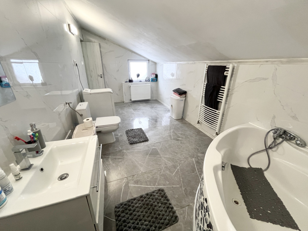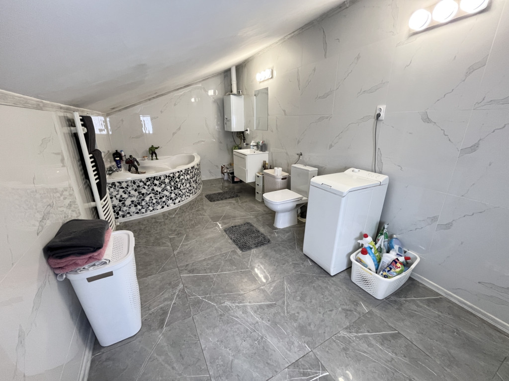 A három különálló szoba biztosítja, hogy minden családtag megtalálja a saját nyugalmát és kreatív terét, míg a tágas fürdőszoba a nap végén felfrissülést kínál.