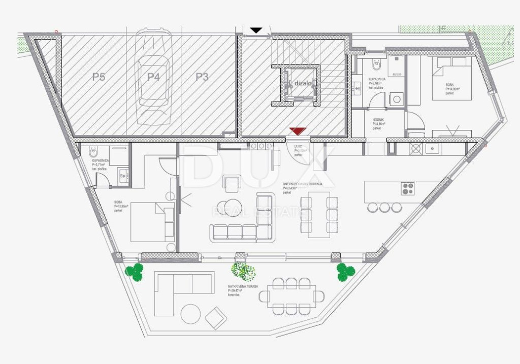 Exkluzív lehetőség a Dux ingatlanban: Eladó 3. számú lakás, 111,58 m2-es alapterülettel, amelyből a terasz 14 m2, gyönyörű kilátással a tengerre.