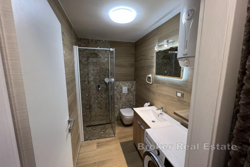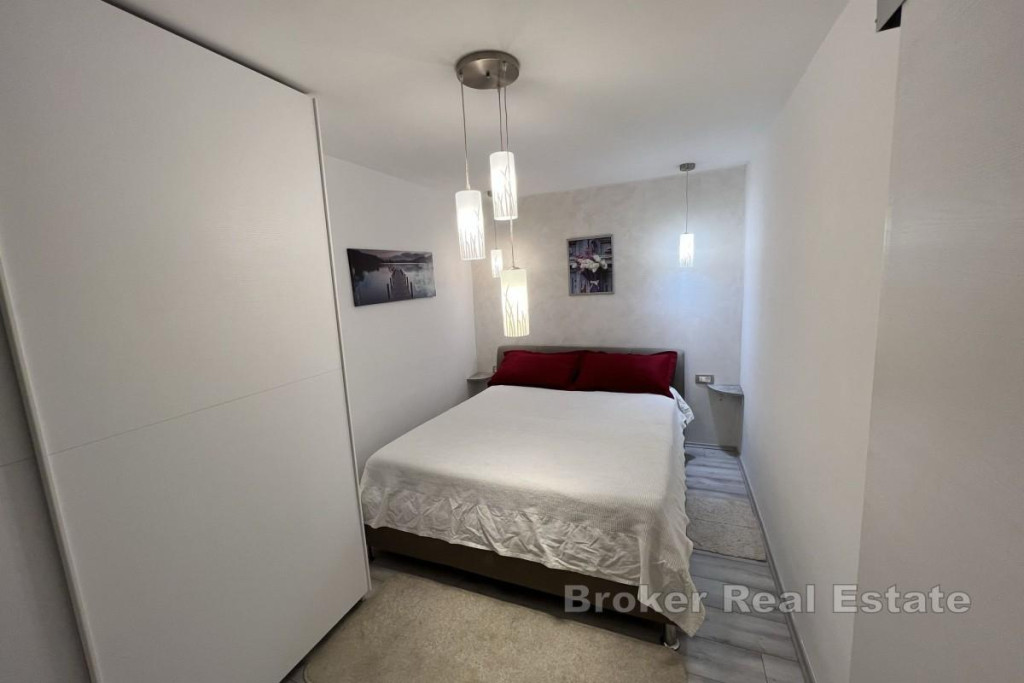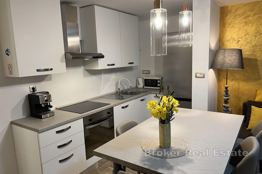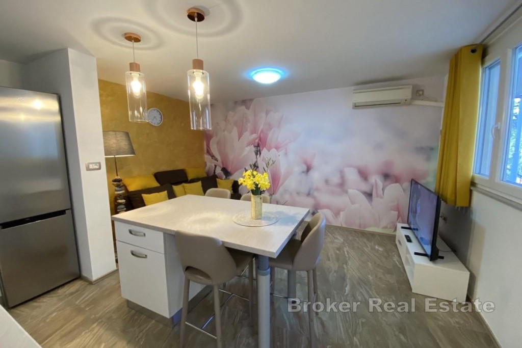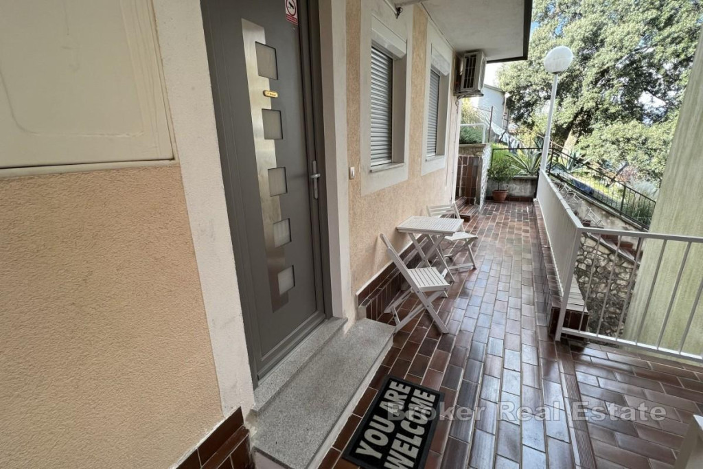 An apartment with a total area of 39 m² is for sale, located in a quiet location in Opatija, just 200 meters from the sea. The apartment consists of two rooms (bedroom and living room), a kitchen and a bathroom. Heating and cooling are provided by air conditioning, and additional comfort is provided by electric underfloor heating. The property was completely renovated and equipped in 2022. The kitchen is fully equipped and includes an induction hob, built-in oven, microwave, fridge with deep freezer, built-in dishwasher and an island table with high chairs. The bedroom has a built-in wardrobe and a double bed. The bathroom has a washing machine and dryer. The living room is equipped with a sofa bed and a TV. The windows have mosquito nets. The apartment is located in a smaller residential building with a total of five apartments, surrounded by greenery. In the basement of the building, there is a shared terrace and a garden with a barbecue, for the use of the tenants. BROKER REFERENCE ID:1024/45