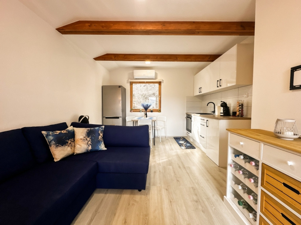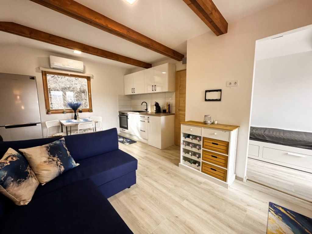 Az házban amerikai konyhás nappali étkezővel, külön hálószoba,