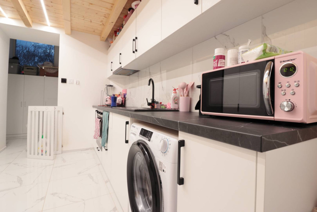 39 m² lakótér + 12 m² egyedi, fa galéria (hálószobaként)