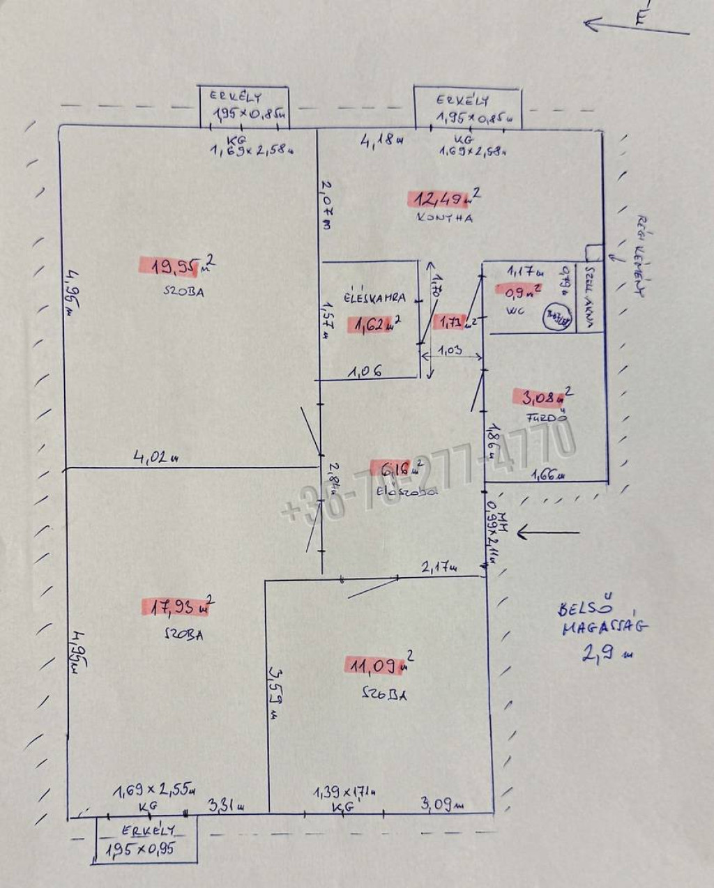 Az ingatlan három, külön nyíló szobával, Három erkéllyel, világos nappalival, két hálószobával, fürdővel, külön WC-vel, kamrával és pincével rendelkezik.
