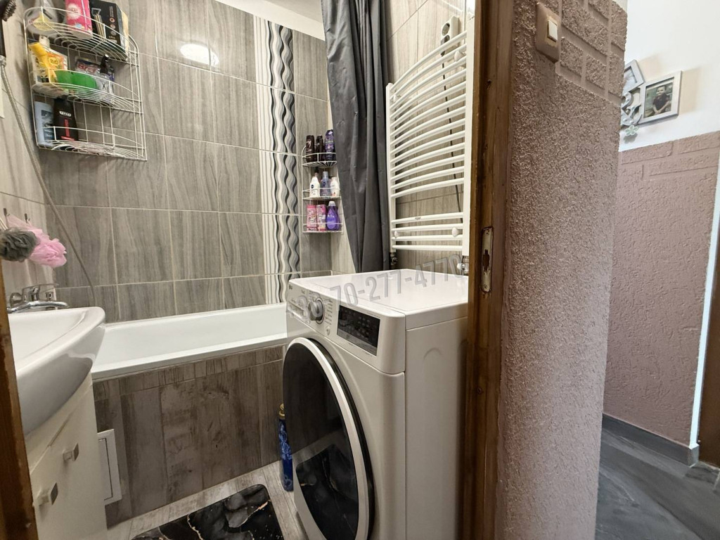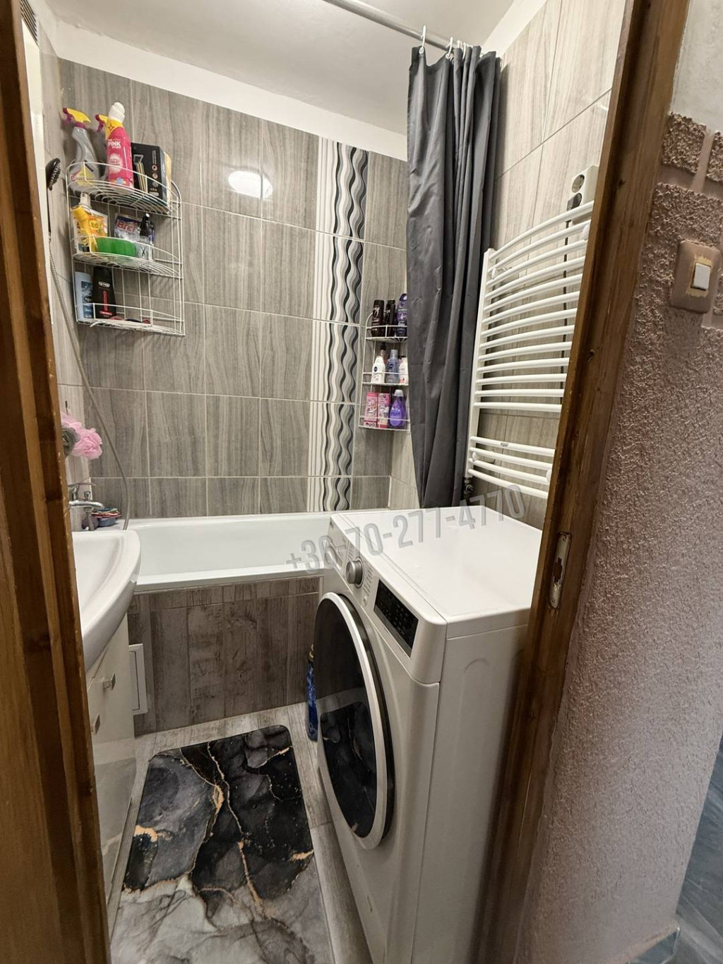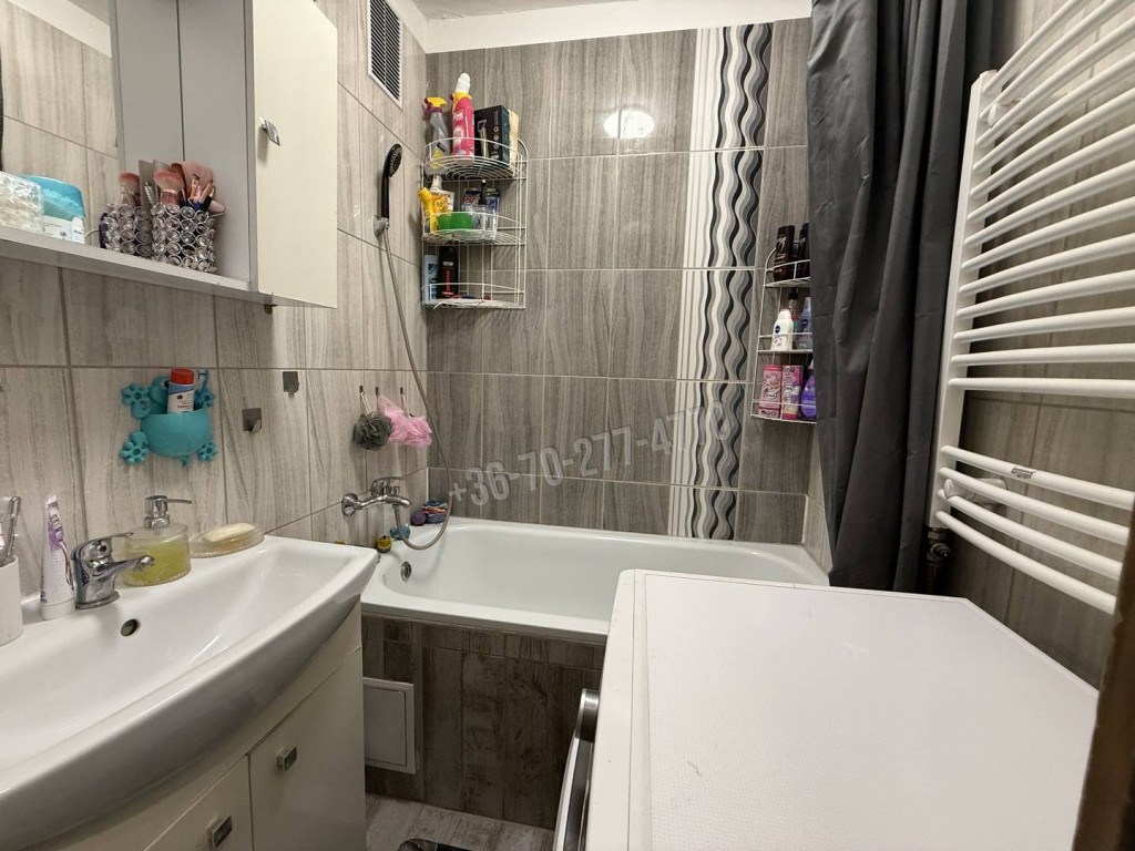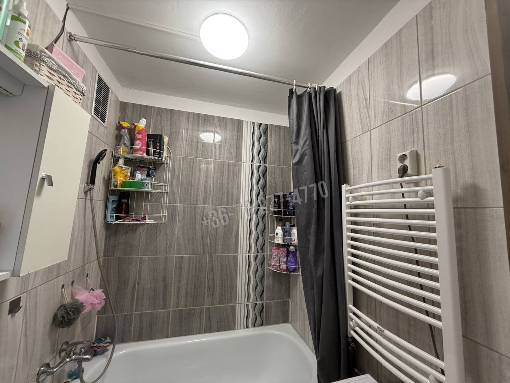 A fürdőszobába törölközőszárítós radiátor lett felszerelve, kád van beépítve. A toalett külön helyiségben található.