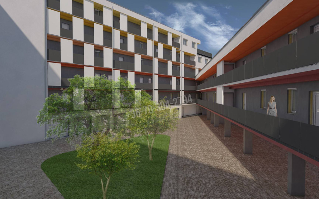 A modern kialakítású, lifttel ellátott, 6 szintes társasház harmonikus és praktikus lakókörnyezetet nyújt.