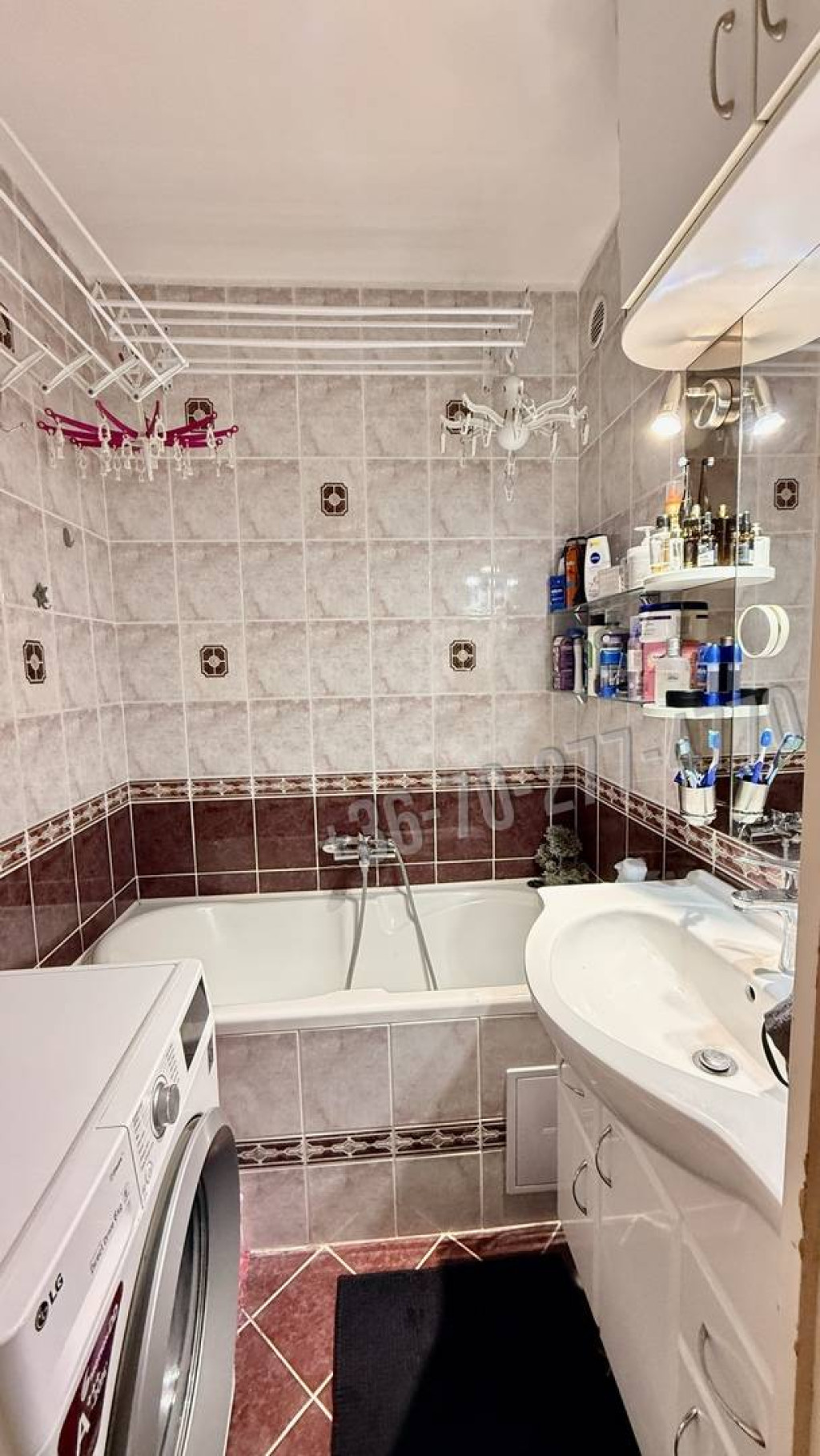 A fürdőszoba felújításakor átszerelték a víz vezetékeket is, és törölközőszárítós radiátort szereltek fel.