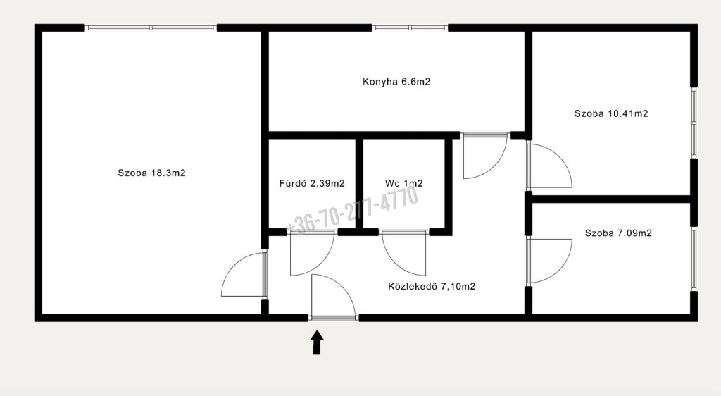 A bejárati ajtó fém biztonsági, az ablakok hőszigetelt műanyagok melyekre redőnyt és rovarhálót is szereltek fel.