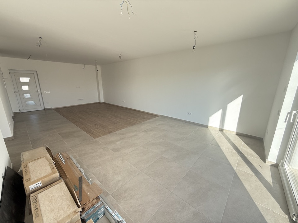 A földszinten található: konyha-nappali-étkező, 2 szoba, fürdő, WC, terasz, zöldterület.
