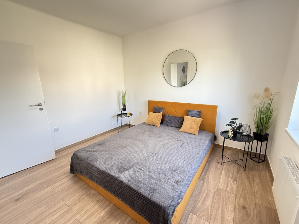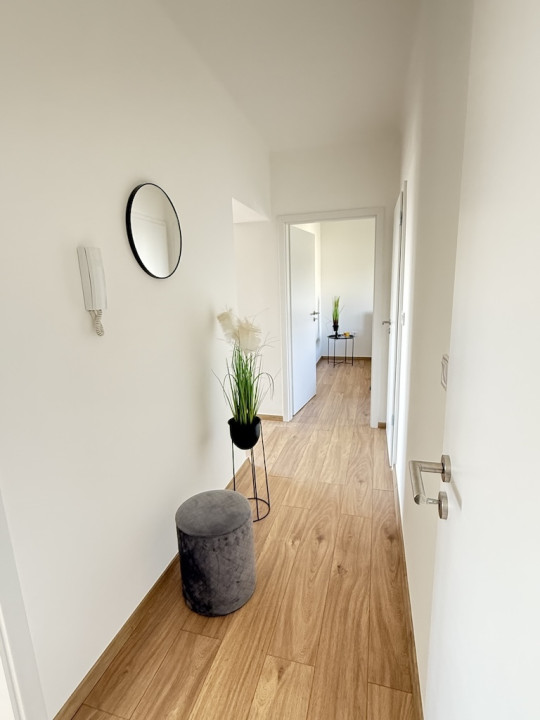 A lakás továbbí pozitívumai: új víz, villany vezetékek, új beltéri ajtók, új burkolatok, egyedi tároló.