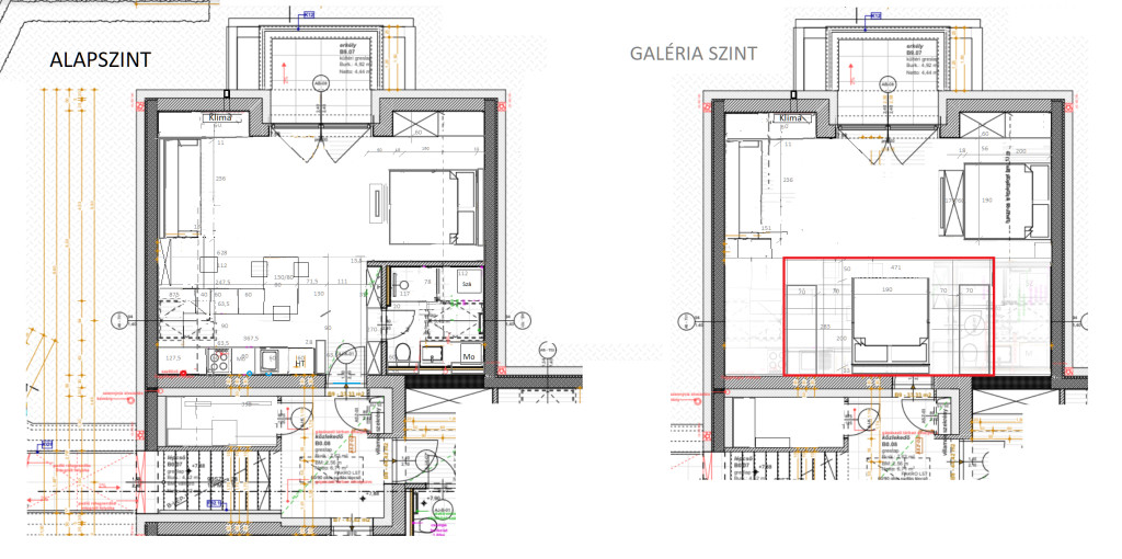 Belmagasság 5 m feletti. Ez a tér a nappaliban is rendelkezésre áll. A konyha és fürdőszoba feletti térben lett kialakítva a galérián, a kb.13 m2 alapterületű második háló helyiség.