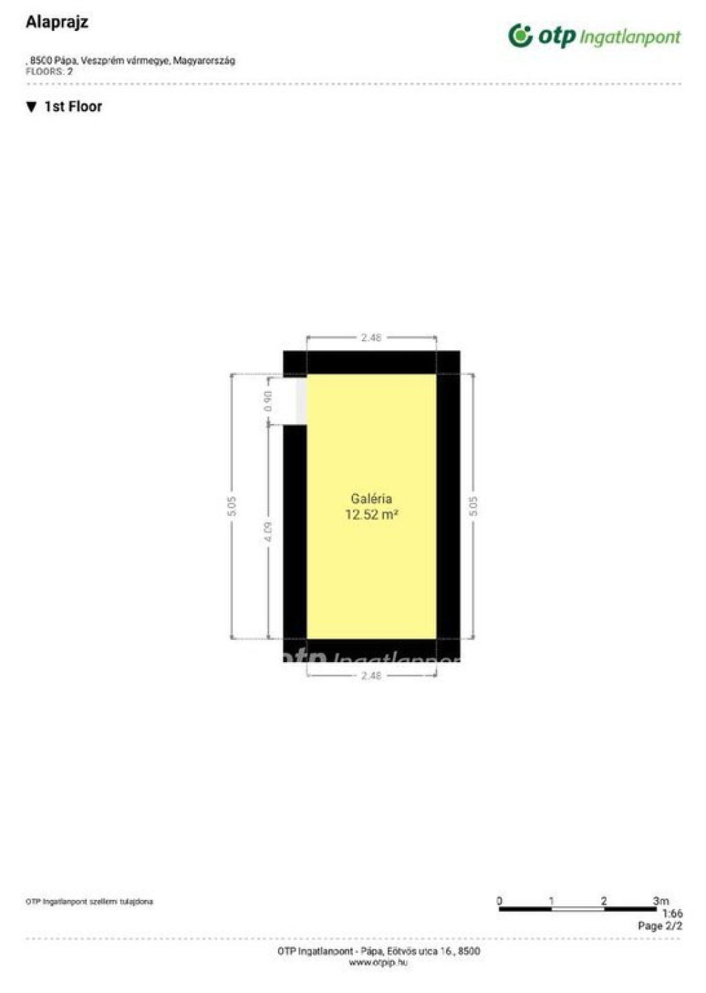 KIVÁLÓ BEFEKTETÉSI LEHETŐSÉG PÁPÁN! 3% hitelre alkalmas ingatlan! Különleges ajánlat Veszprém vármegyében, Pápán! A belváros szívében eladó egy gyönyörű, 8 lakásos polgári társasház 49 m2 alapterületű tégla építésű felújított lakása, elektromos redőnnyel, riasztóval, hűtő- fűtő klímával, kondenzációs kazánnal! Praktikus megvalósítása a modern, mai igényekhez igazodik, így kényelmes, élhető otthona lesz új lakójának! Kiváló lehetőség családi otthonnak, irodák, orvosi rendelők, apartmanok kialakítására! A társasház lépcsőházából belépve, egy előszoba fogadja a látogatót, innét juthatunk a lakásba. Itt található előszoba, nappali és egy 13m2 galéria, konyha és étkező, fürdőszoba és wc valamint 1 tároló. A vételár tartalmazza a beépített konyhabútort. A fűtés új gázkazánról radiátoros hőleadással biztosítja a kellemes meleget, azonban a lakásban megtalálható hűtő-fűtő klíma is, mellyel az átmeneti időszakokban energiatakarékosan érhetjük el a számunkra megfelelő hőmérsékletet. Az ízlésesen kialakított lakás kellemes, nyugodt környezetet biztosít a pihenésre, de akár iroda is válhat belőle! Állapota kiváló, felújított. Ajánlom azon vásárlóknak, akik különleges, értékálló lakást keresnek, de akár befektetési szempontból is remek vétel lehet, hiszen elhelyezkedéséből, egyszerű megközelíthetőségéből adódóan kiválóan alkalmas a városban egyre élénkülő turizmus miatt rövidtávú lakáskiadásra is! A társasház a jövő évben kívülről is teljesen meg fog újulni, külső homlokzati felújítást, lépcsőház felújítást fog kapni! Az ingatlan finanszírozásához szükséges hitel ügyintézése irodánkon keresztül díjmentesen, kamatkedvezményekkel elérhető! Az ingatlan megfelel a fix 3%-os Otthon Start Hitelprogram feltételeinek! Az adásvételi szerződés megkötéséhez igény szerint megbízható ügyvédi közreműködést biztosítunk, és segítséget nyújtunk az adásvételhez kapcsolódó ügyek intézéséhez is. Az ingatlanról készült alaprajz, illetve fényképfelvételek az Otp ingatlanpont szellemi tulajdonát képezik. Ne szalassza el ezt a figyelemre méltó lehetőséget, vásároljon egy kiváló adottságokkal rendelkező ingatlant! Hívjon ma!