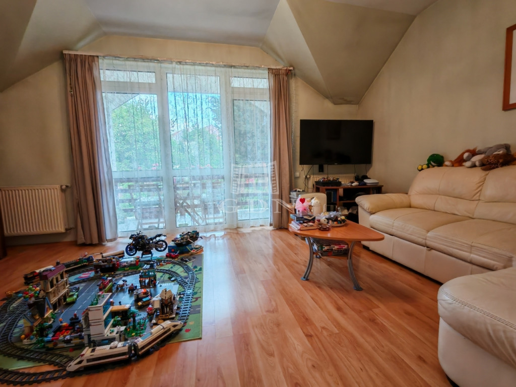 Az alsó szinten van a 23 m² GARÁZS, ami a lakáshoz tartozik! Ajtaja távirányítással nyílik.