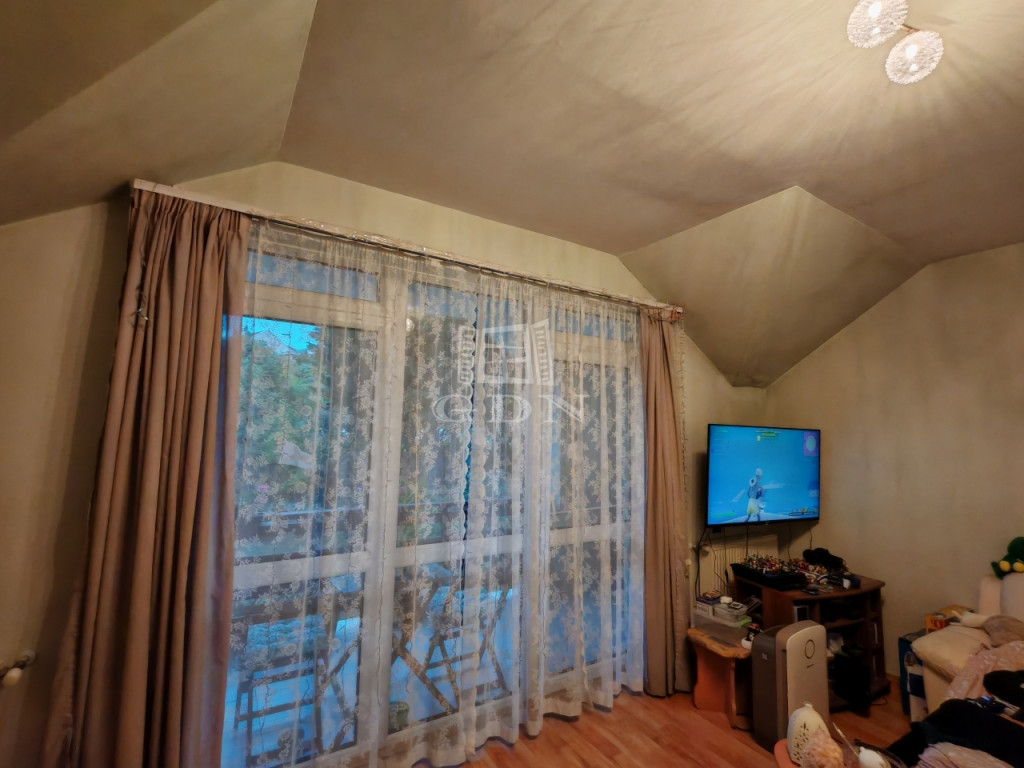 A külső nyílászárók, a nappaliban két rétegű hőszigetelt műanyag ablakok. A hálókban és a konyhában, VELUX tetőtéri ablakok vannak, fényvédő rolókkal.