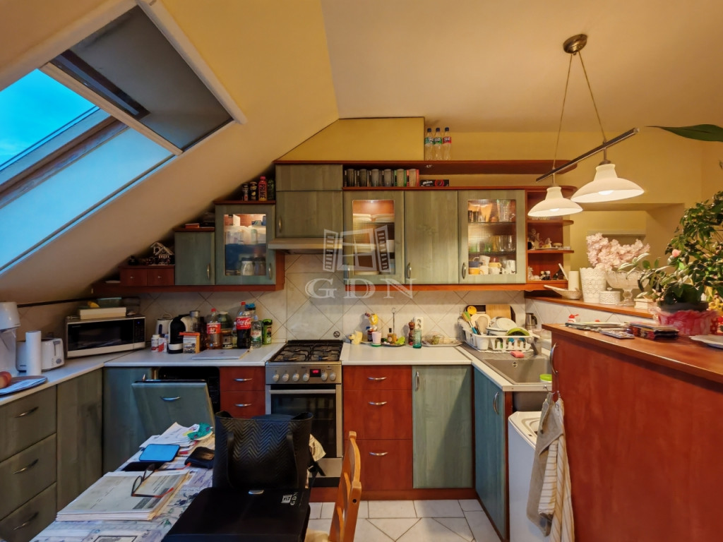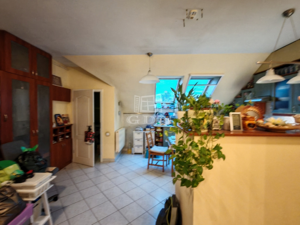 A zárt lépcsőházból juthatunk el a kínált tetőtéri lakásba.