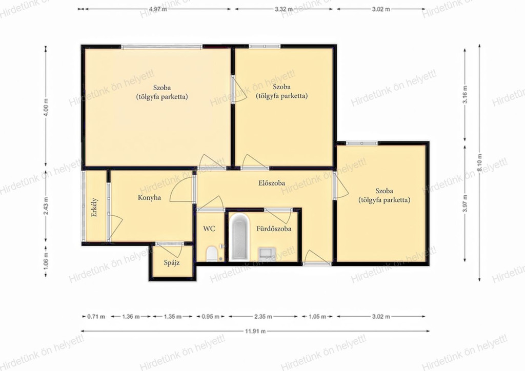 Az egyetemtől mindössze 3 perc sétára kínálunk megvételre egy 65 m²-es, 3 szobás, jó állapotú lakást, amely egy téglaépítésű, 4 emeletes társasház első emeletén található.