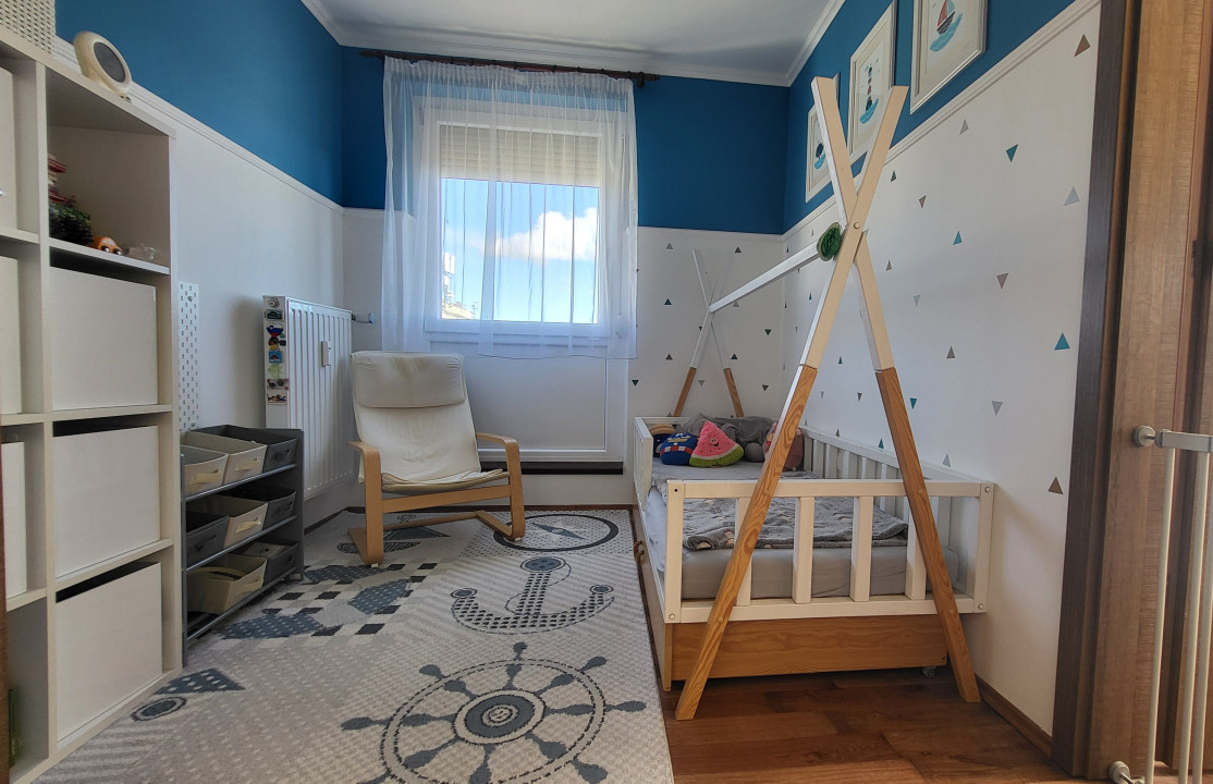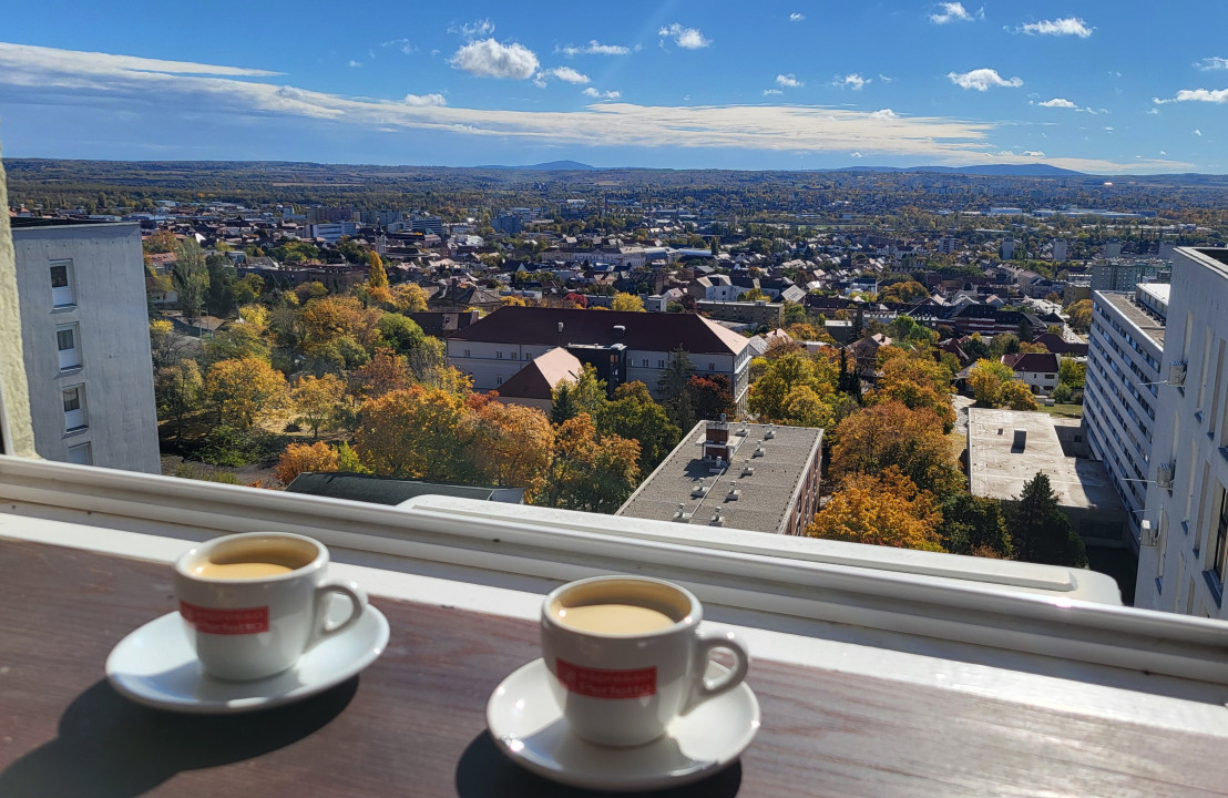 A lakás a 10. emeleten található, csak egy szomszéddal határos, felső szomszéd nincs – így a nyugalom és csend garantált.