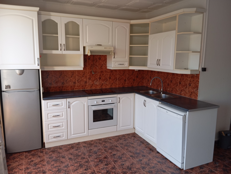 Az átalakítás során a félszobát kibontották,így egy tágas konyha- étkező lett kialakítva a két lakószobán kívül.