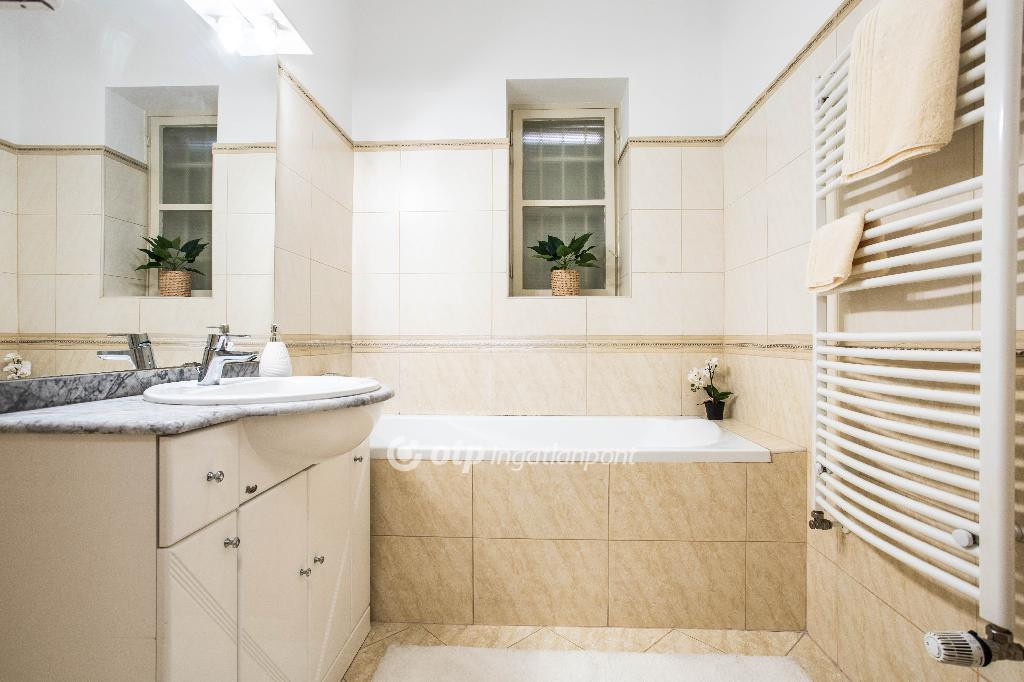 Hatalmas előszobája jól bútorozható, az összes helyiség megközelíthető innen. Fürdőszobája ablakos, kádas, a külön mellékhelyiség szintén ablakkal rendelkezik.