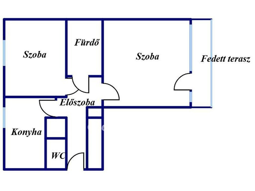 A lakás 2 szobával, konyhával, külön wc-vel és fürdőszobával rendelkezik, elosztása kiváló, terei világosak.