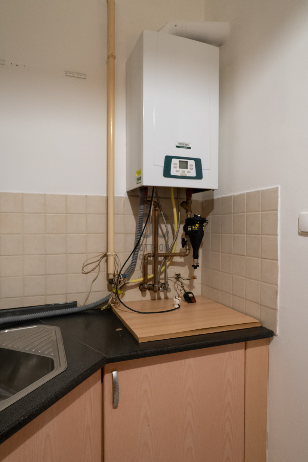 A lakás konyha- étkező, nappali, hálószoba, fürdőszoba és külön wc helyiségekből áll. A lakás jó állapotú. Fűtése cirkó gázkazán. A lakáshoz tartozik még egy saját tároló is az alagsorban. A lépcsőház rendezett és a házhoz egy közös udvar tartozik.