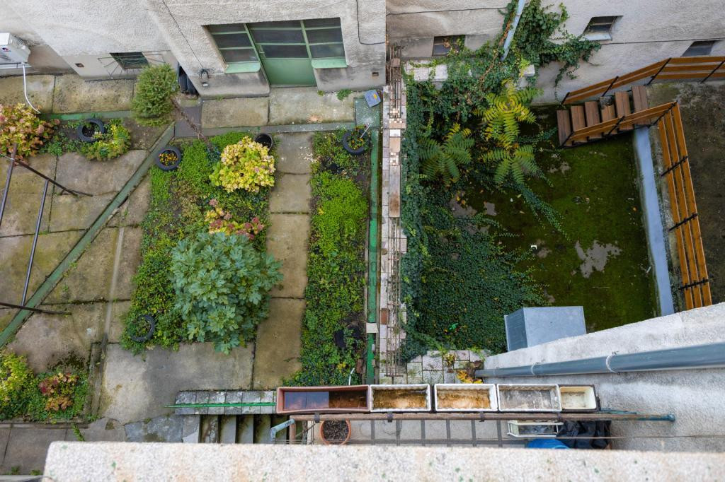A központi elhelyezkedés ellenére csendes, udvarra néző lakás két fürdőszobával, gardróbbal, kamrával rendelkezik.