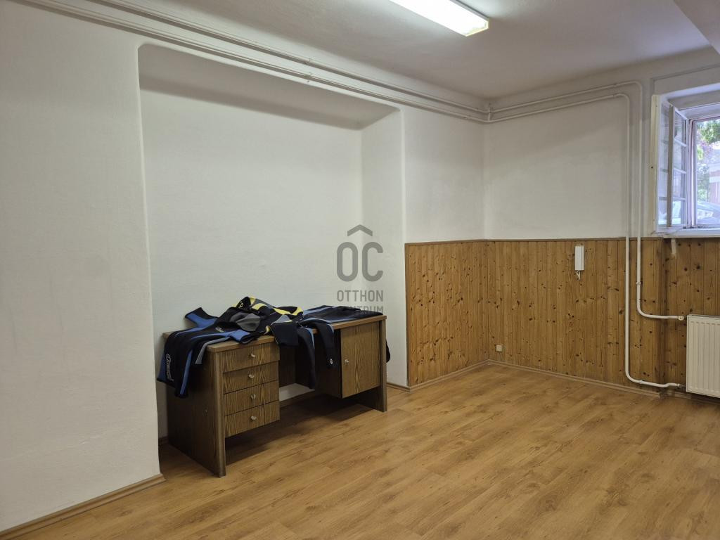 A folyosóról külön megközelíthető szoba (jelenleg konyha) és a fürdőszoba+WC kialakítható vendégeknek, vagy akár kiadásra is.