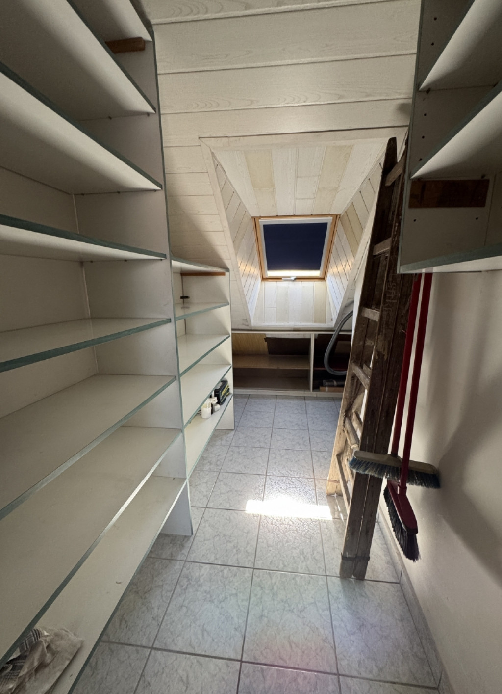 - Sok tárolásra alkalmas beépített szekrény és polc