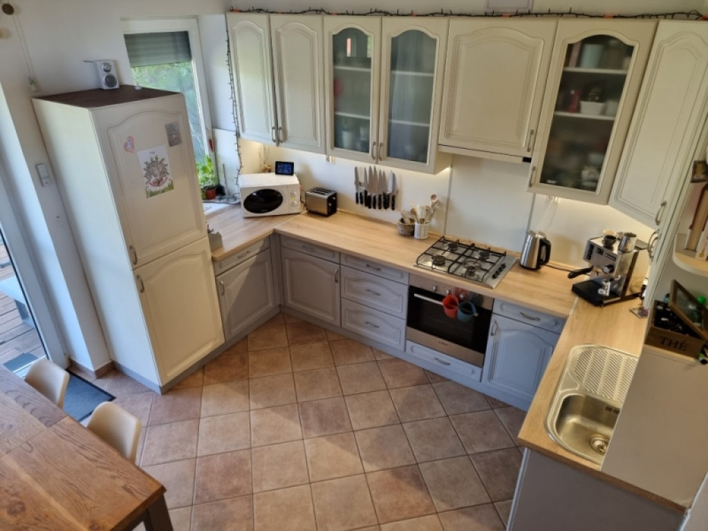 Világos étkező-konyha teraszkapcsolattal + spájz