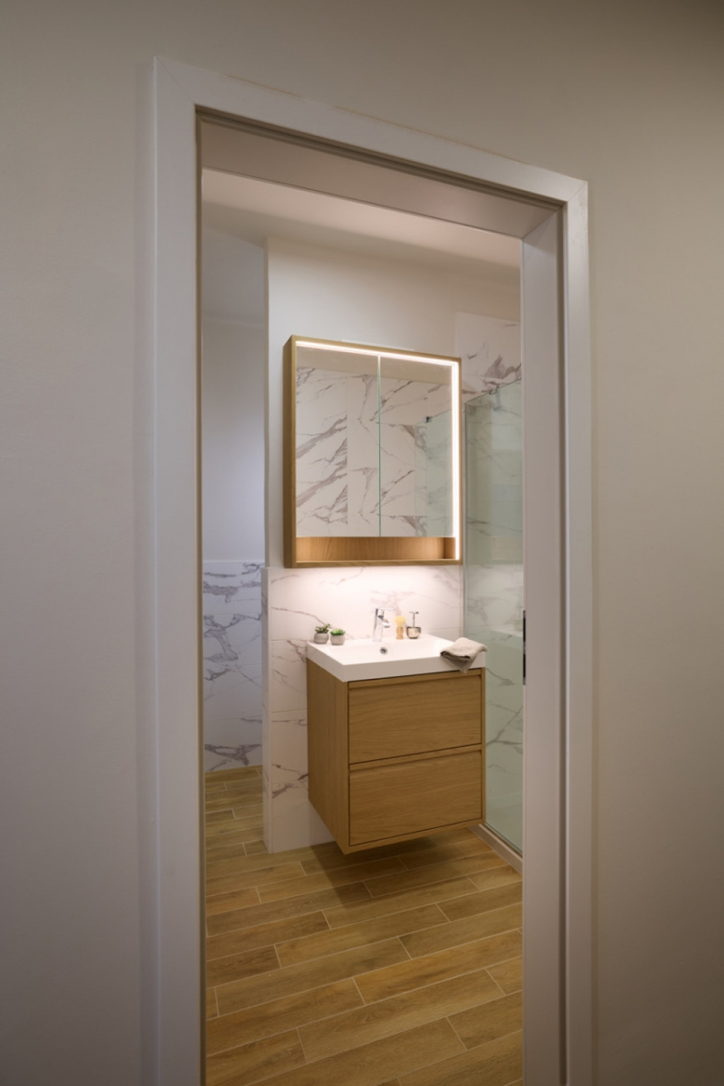 A lakás teljes körűen felújított: új burkolatok, új szaniterek, frissen festett falak, csiszolt és lakkozott parketta. A konyha teljesen gépesített, minőségi beépített bútorral, benne: indukciós főzőlap, sütő, mikrohullámú sütő, páraelszívó, hűtő, mosogatógép és kombinált mosó-szárítógép. A hálószobában beépített gardróbszekrény található. A két klíma, a műanyag nyílászárók, a redőnyök és a szúnyoghálók mind a kényelmet szolgálják. Az erkélyek újraburkoltak, szigeteltek, árnyékolóval ellátva.