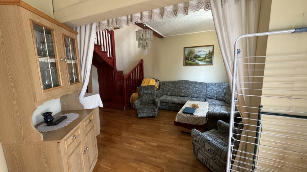 Az alsó szinten található egy nagy nappali, egy hálószoba, konyha + étkező, fürdőszoba + WC.