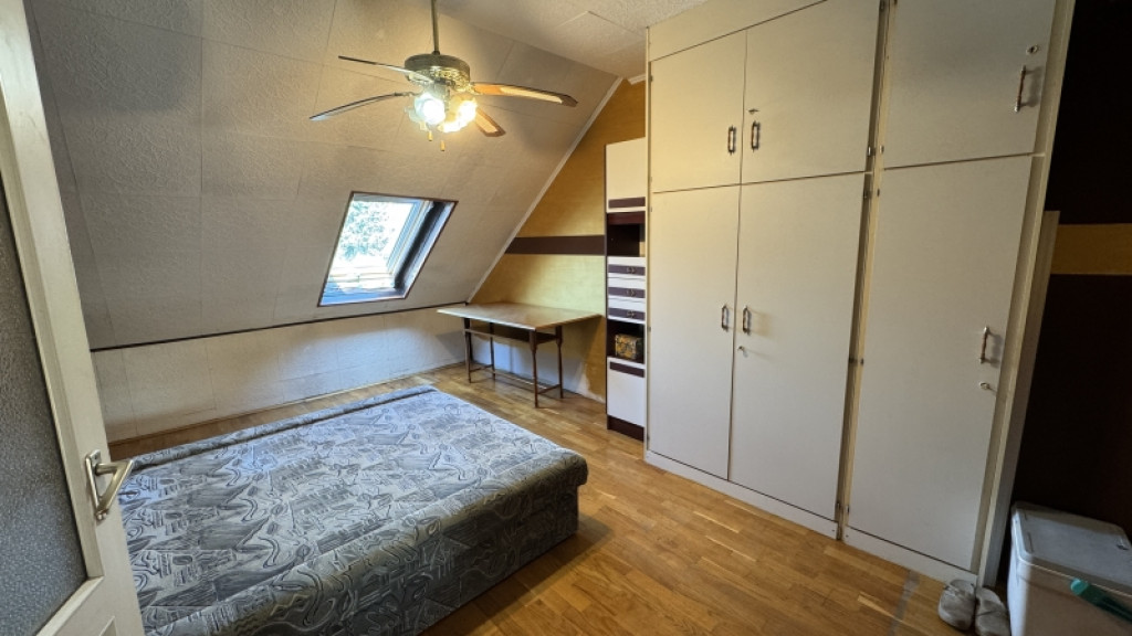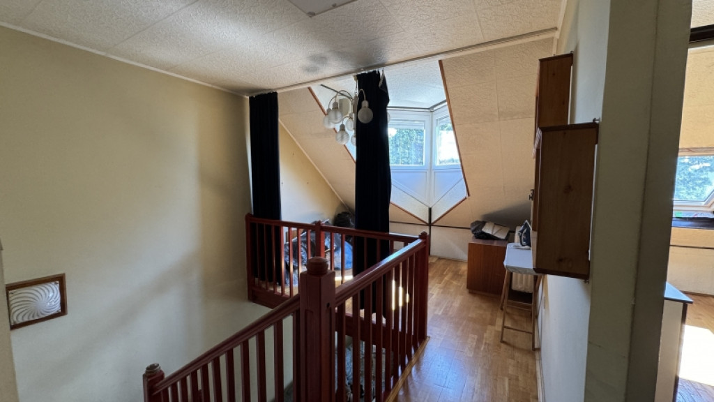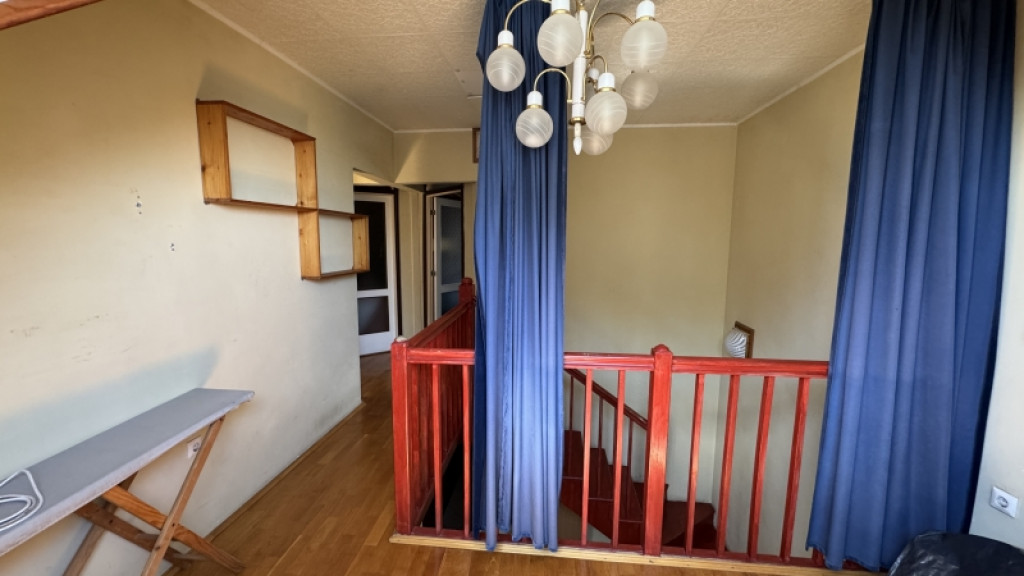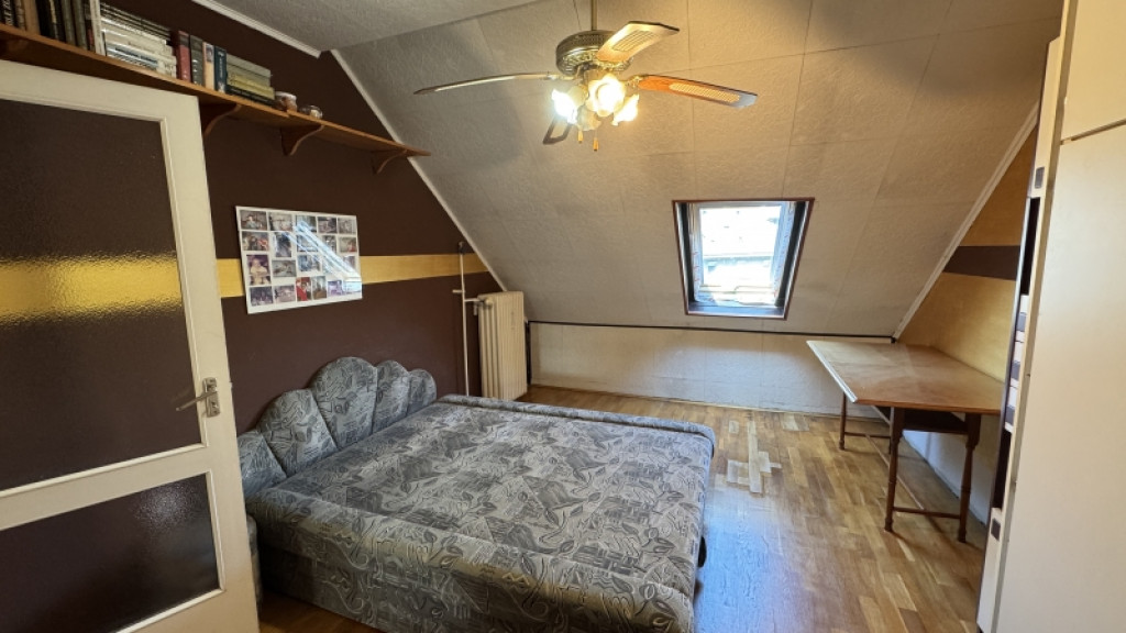 A nappaliból vezet fel a lépcső a felső szintre, mely már tetőtéri. Itt található 3 hálószoba, egy hall és egy fürdőszoba + wc.