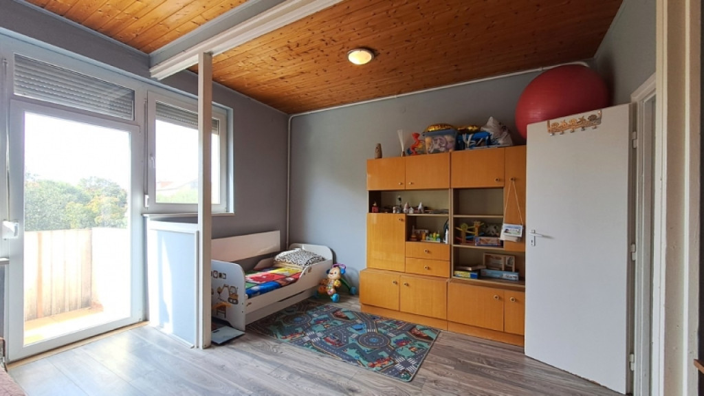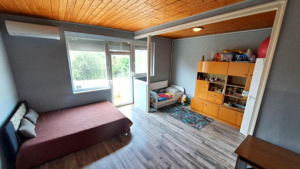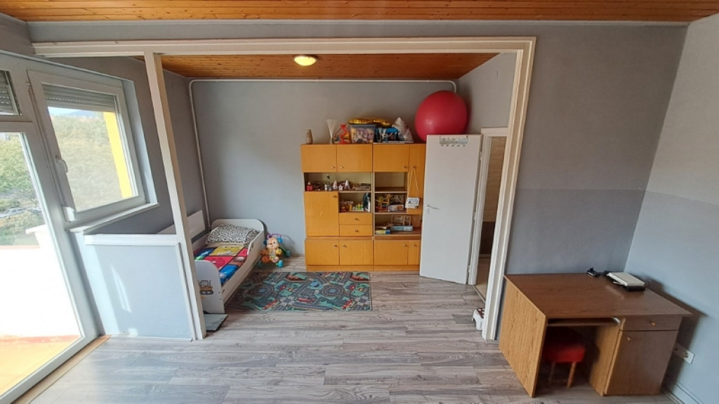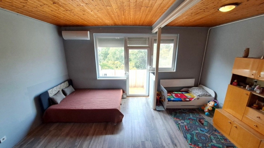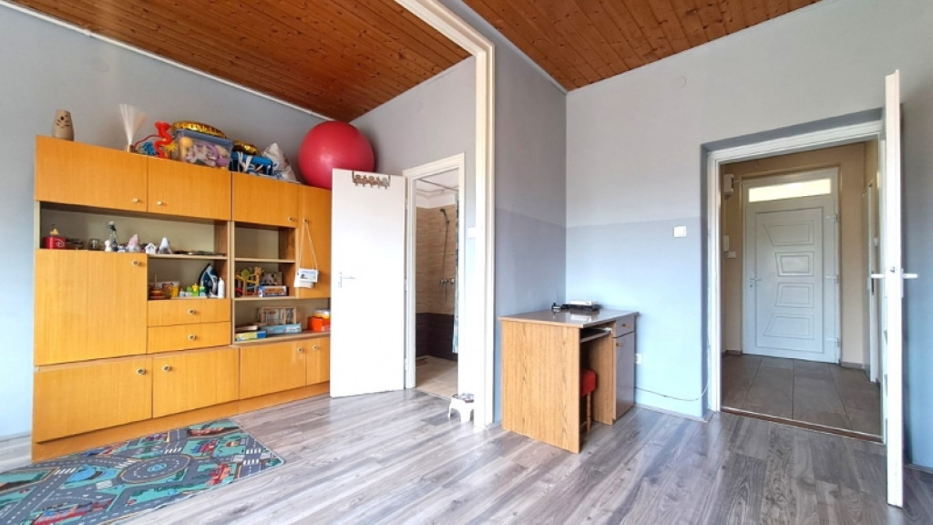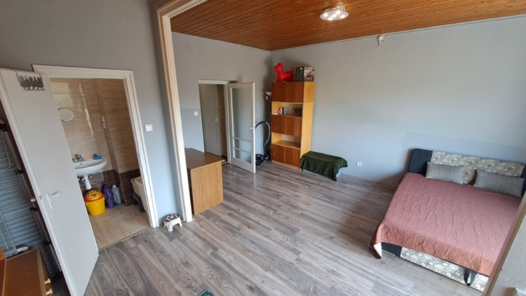 A nagyszoba méretéből és kialakításából adódóan egy külön szoba leválasztására is alkalmas lehet, így lenne egy külön hálószoba is.