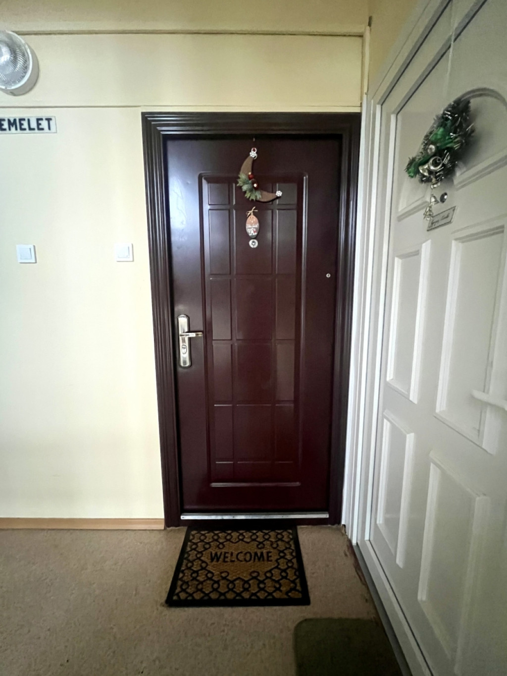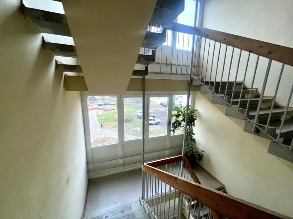Helyiséglista: előszoba, közlekedő, konyha, fürdőszoba, WC, két külön nyíló szoba. A nagyobb szobából nyílik egy 5m2-es erkély, mely szúnyoghálós.