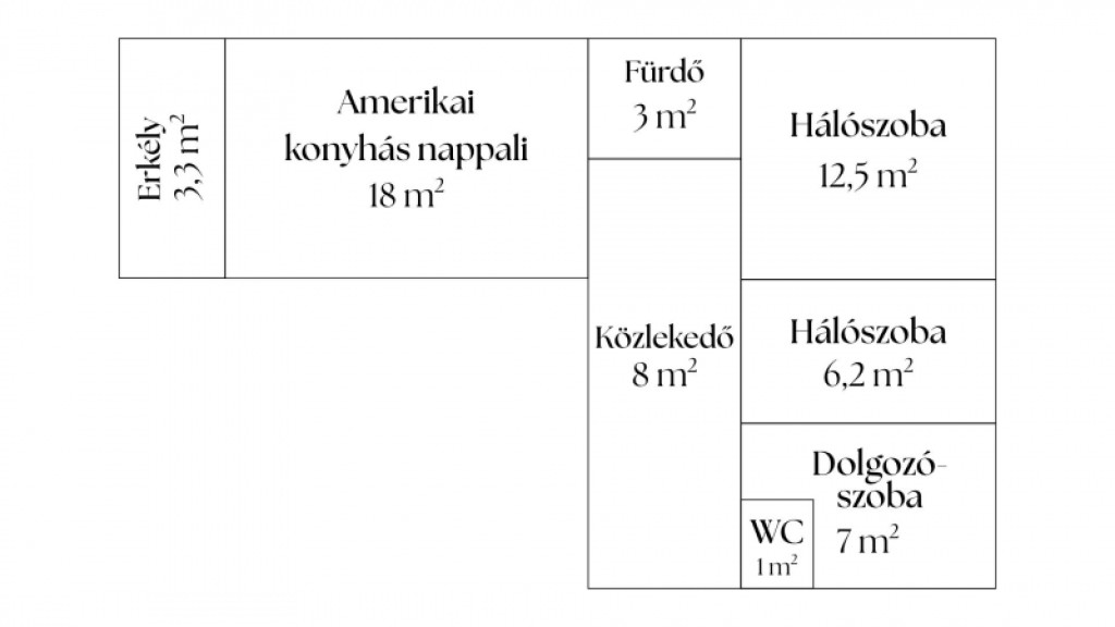 Az átalakítás során új, praktikusabb elrendezést alakítottak ki, így jelenleg egy amerikai konyhás nappalival, 3 külön nyíló szobával, fürdőszobával és külön WC-vel rendelkezik a lakás.